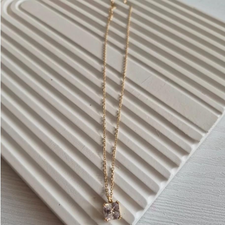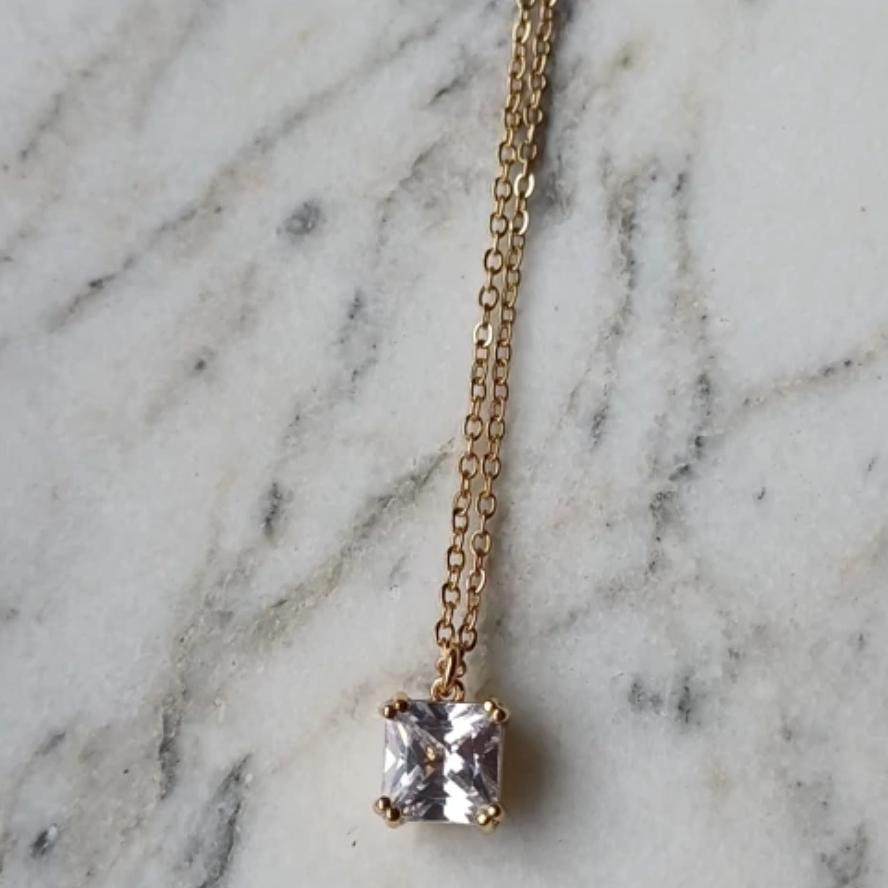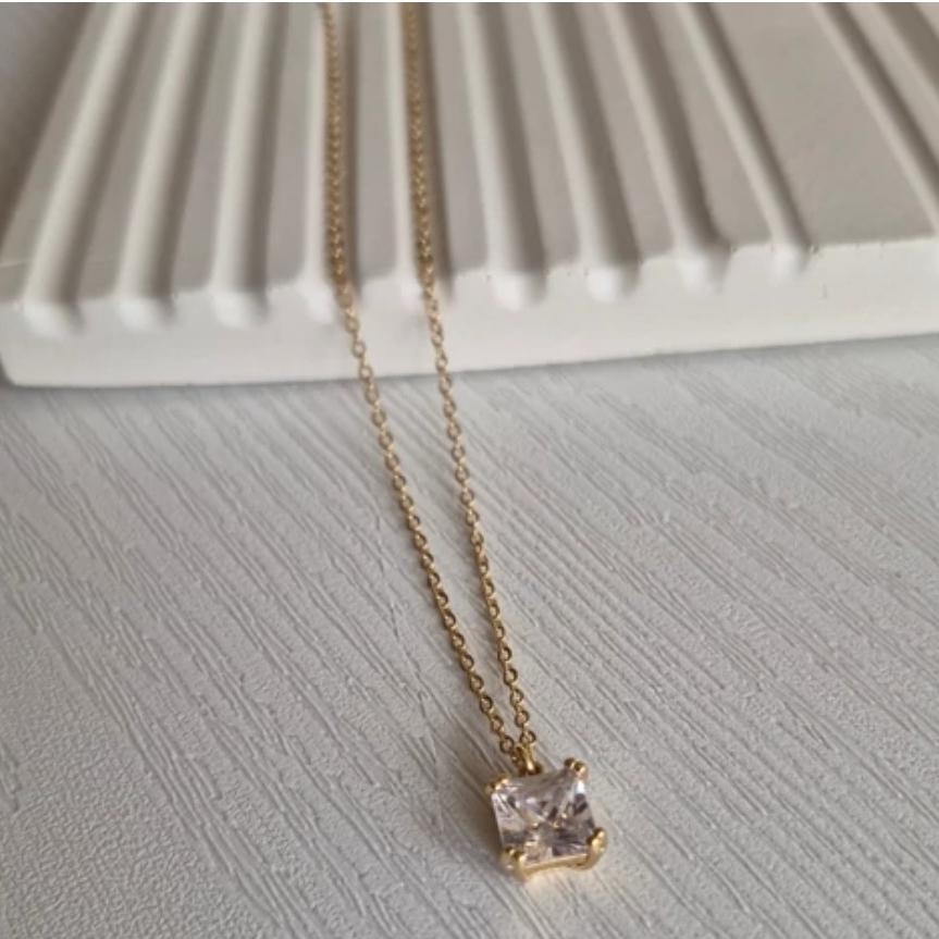 زنجیر دیپلمات طلایی با پلاک مربعی نگین درشت
