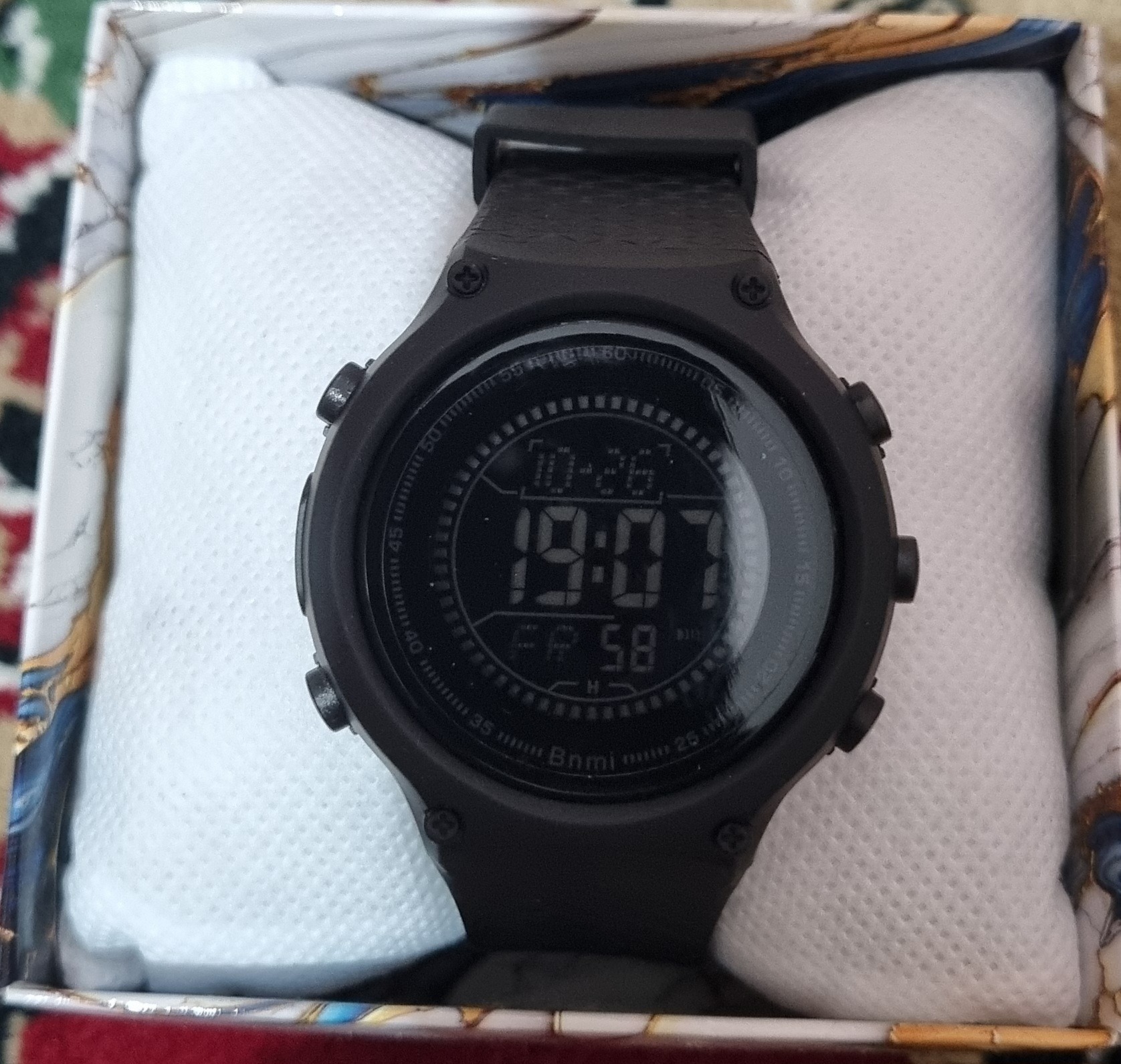 ساعت بنمی صفحه گرد بزرگ،ضد آب در حد شستشوی دست صفحه مشکی و بلک لایت سبز ،لازم به ذکر است در دسته بندی برند بنمی موجود نبوده