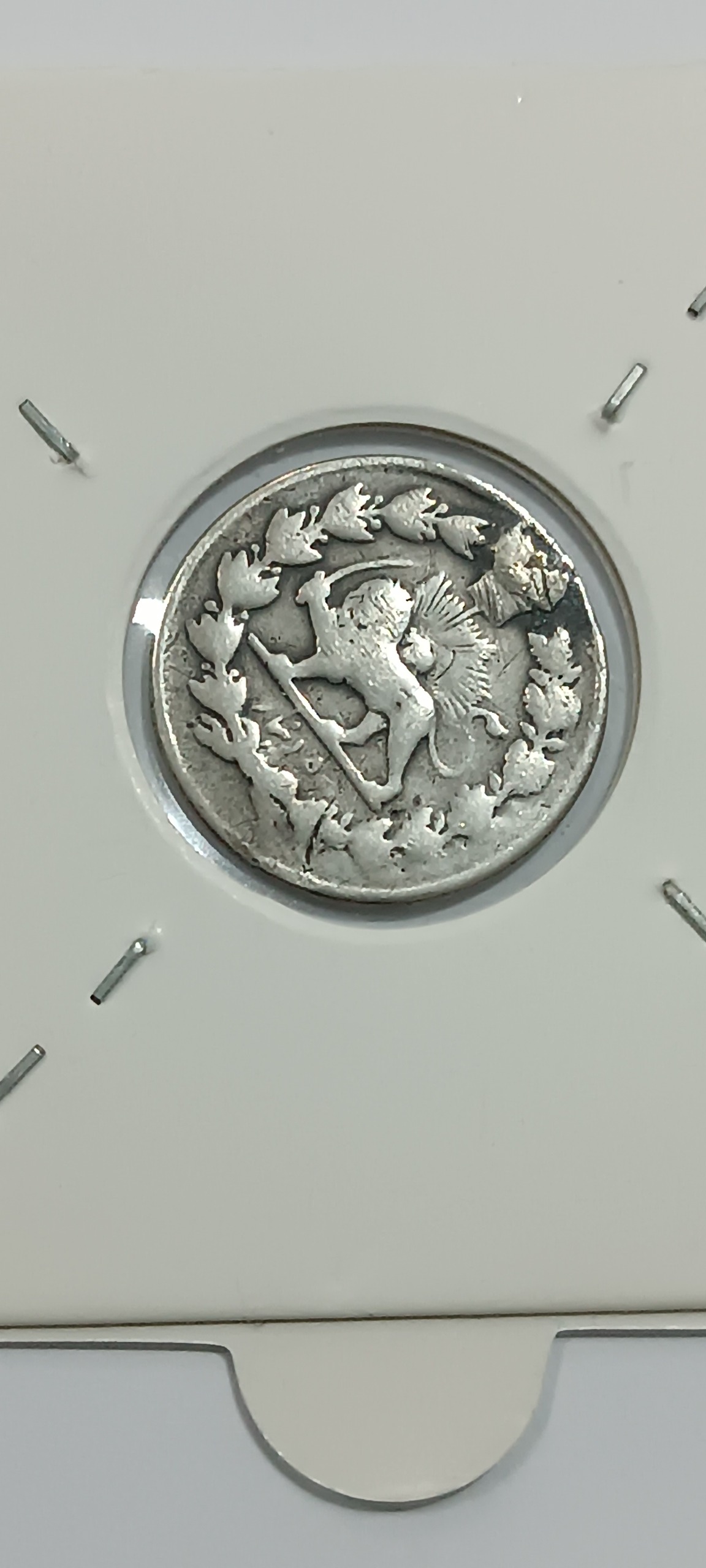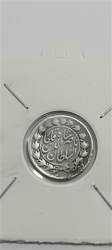 سکه نقره 500 دینار ناصرالدین شاه قاجار که جای دستک دارد.