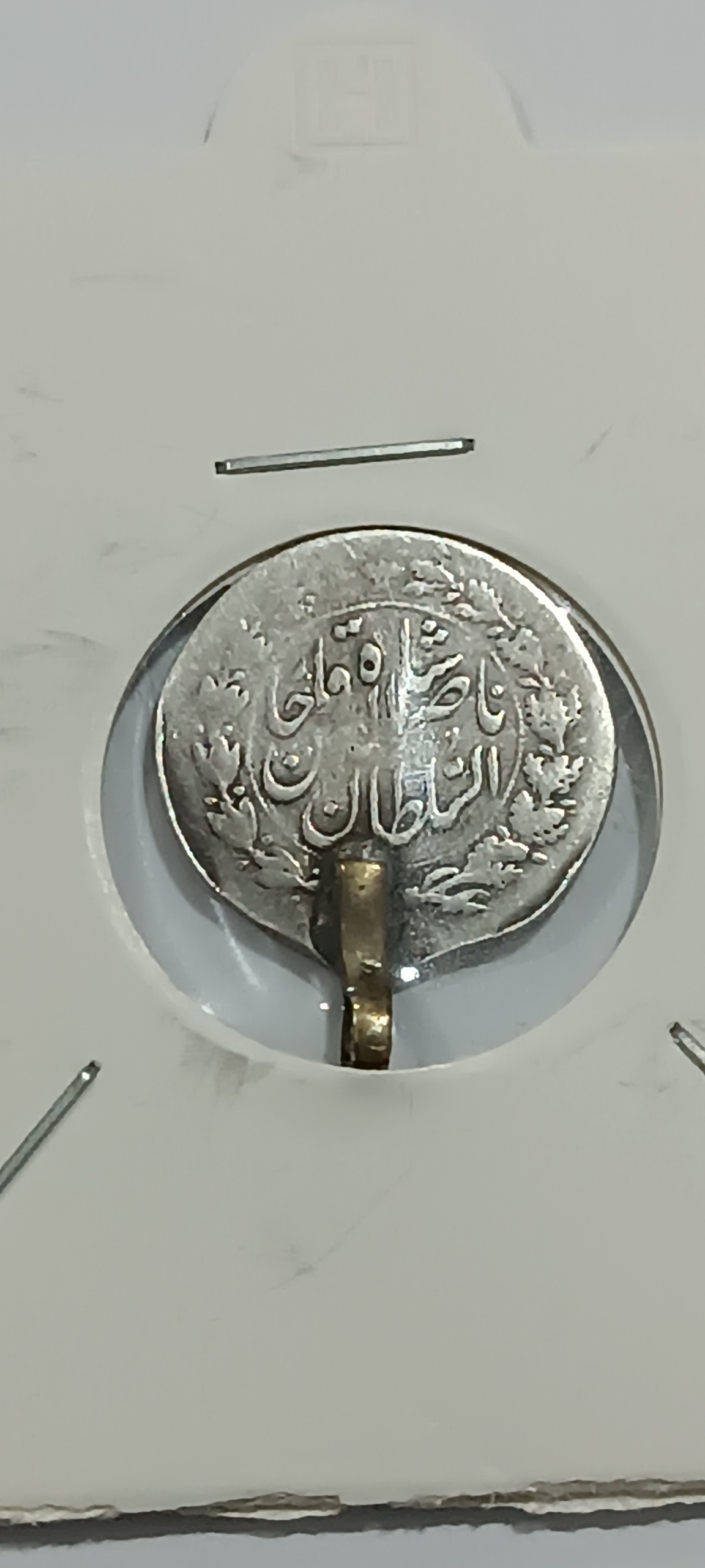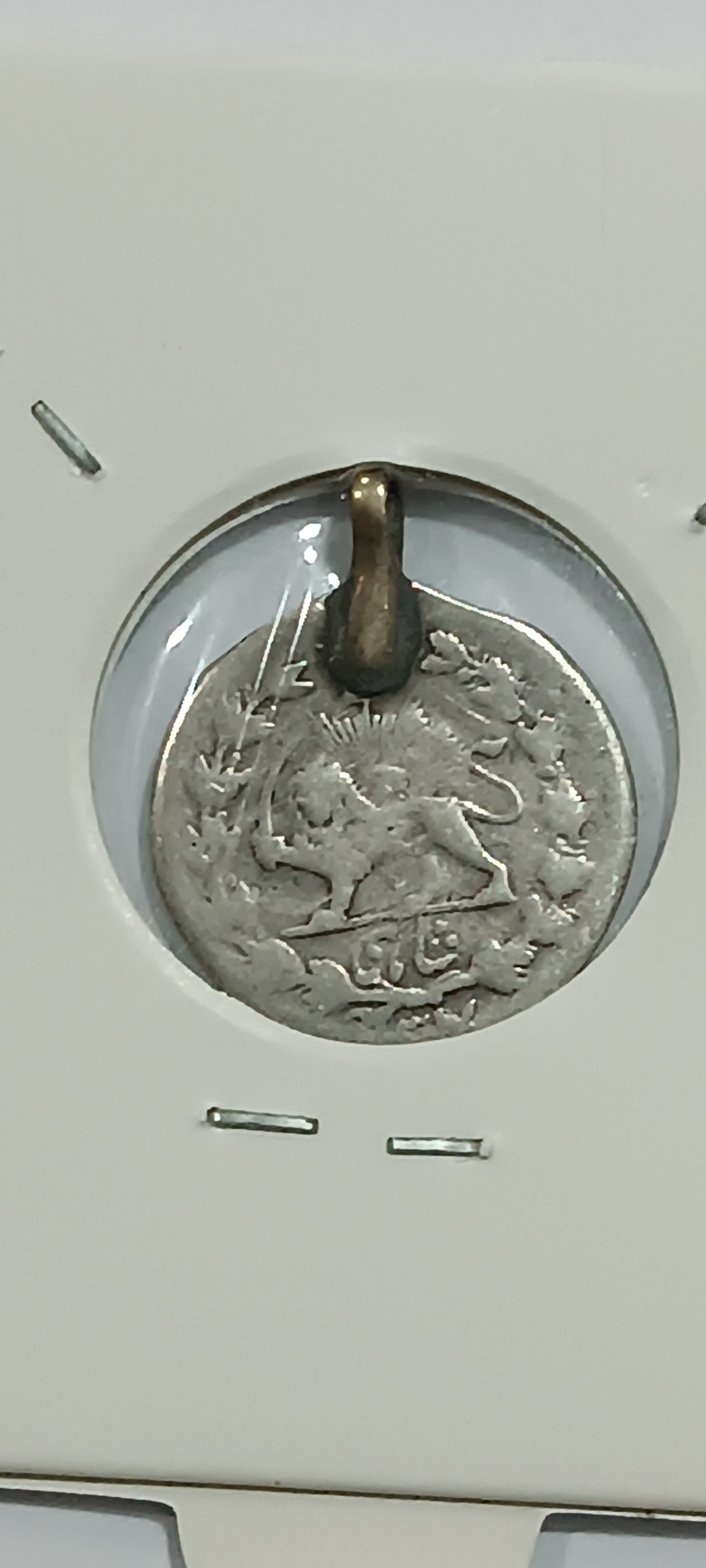 سکه نقره شاهی ناصرالدین شاه قاجار که دستک دارد