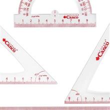 ابزار رسم (خطکش، گونیا و نقاله) از آن دسته از لوازمالتحریرهایی است که از سالهای نخستین تحصیل تا پایان متوسطهی دوم و حتی در دوران دانشگاه با آن سرو کار داریم. ابزاری که پیش روی شماست در عین سادگی ظاهری که دارد برای یک دانشآموز بسیار کاربردی است و میتواند تمامی نیازهای اولیهی او را برطرف نماید. درجهبندی این مجموعه سانتیمتر بوده و کنکو در طراحی ساخت آن از فرورفتگی منحنیشکلی استفاده کرده که علاوه بر زیبا ساختن جلوهی آن، مانع از لیز خوردنش در دست کاربر میشود. شفاف بودن پلاستیک بهکاررفته در این کالا باعث میشود که فرد هنگام استفاده بتواند قسمتی که در زیر خطکش قرار میگیرد را هم ببیند. این مجموعه دارای یک خطکش 20 سانتیمتری، یک نقاله 180 درجه و دو گونیا (یک گونیای 45 درجه و یک گونیای 60/30 درجه) است. کنکو برندی کانادایی است که لوازمالتحریر تولید میکند و سالهاست که در ایران نیز فعالیت مستقیم دارد. ازجمله دلایل شهرت این برند تولید محصولات باکیفیت، با قیمتی مناسب است که در جذب خریدار نقش بسزایی دارد. تمامی محصولات این شرکت از مواد اولیه درجه یک و با در نظر گرفتن نیاز مشتری تهیه میشود. طراحیهای بهروز این محصولات، کنکو را به برندی محبوب در میان دانشآموزان تبدیل کرده است.