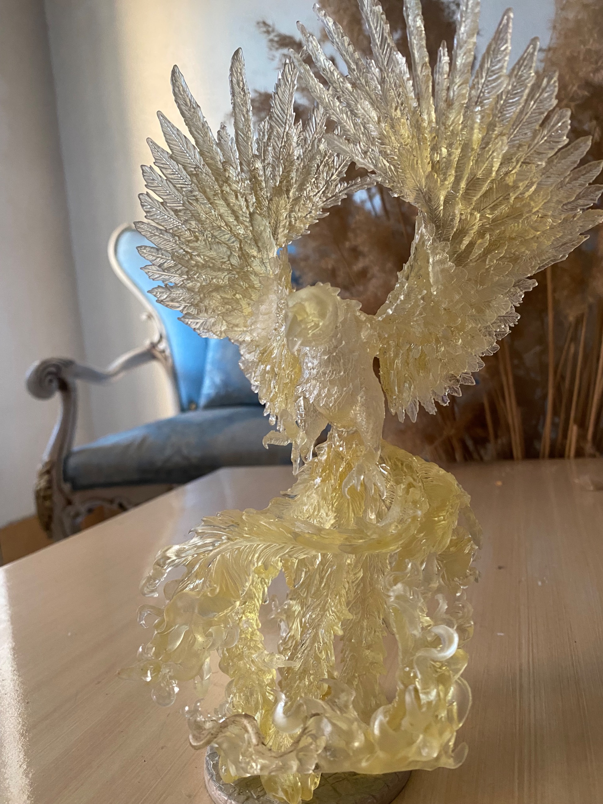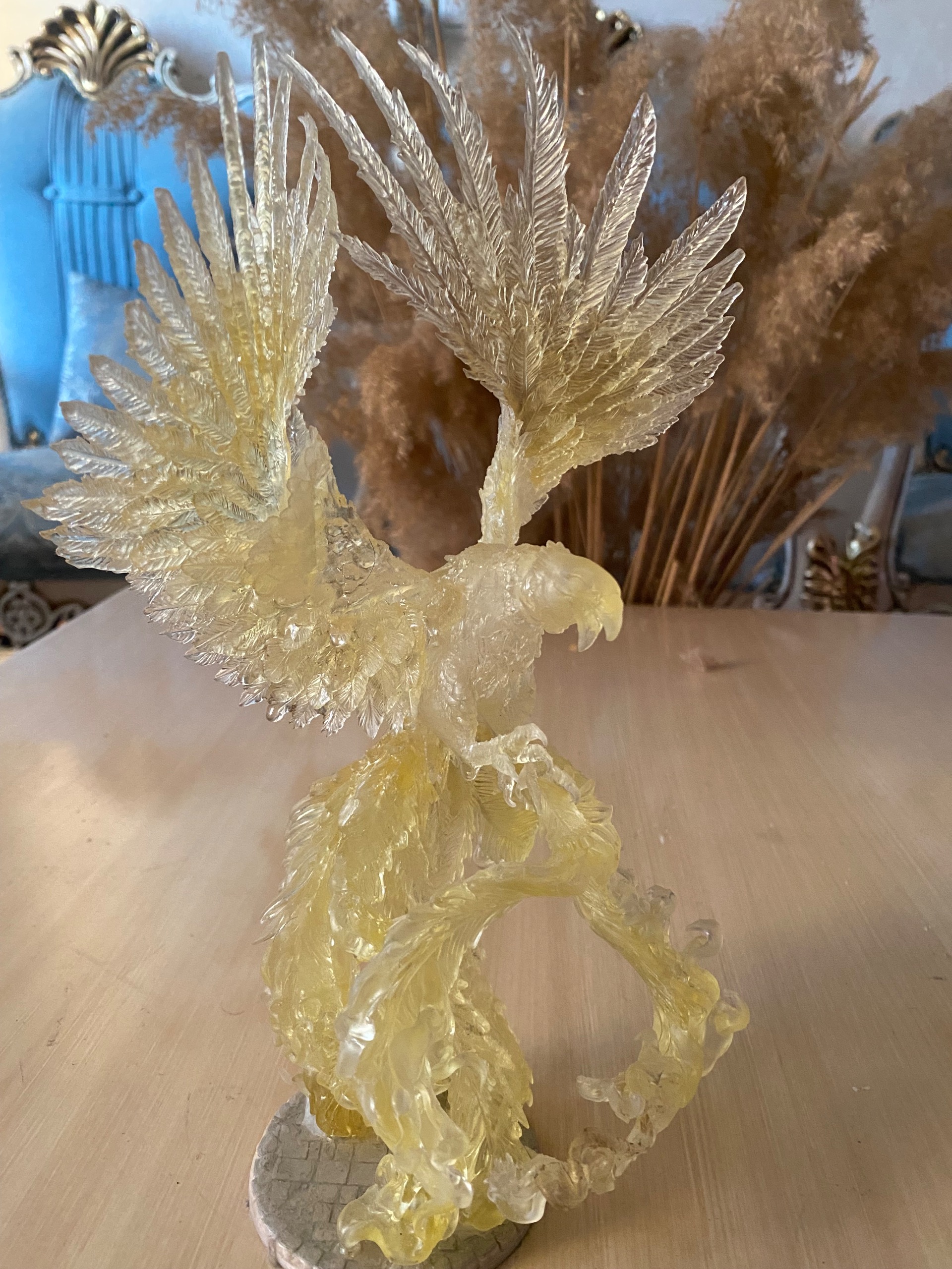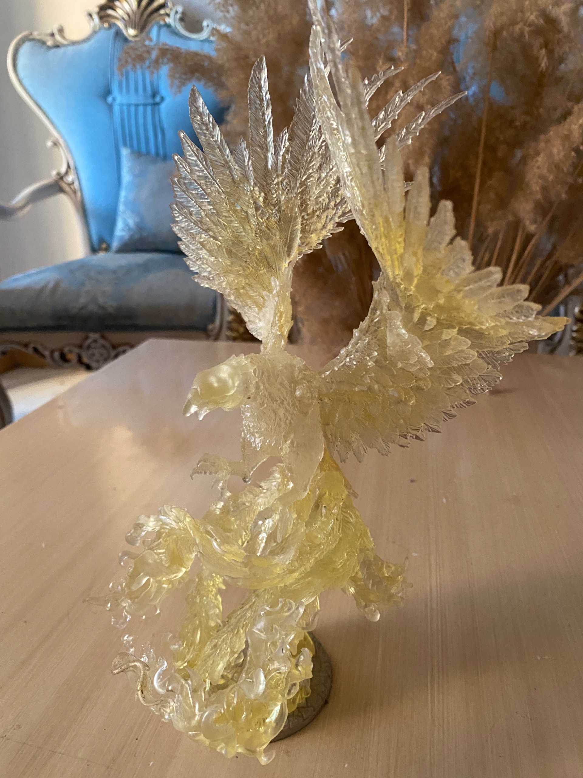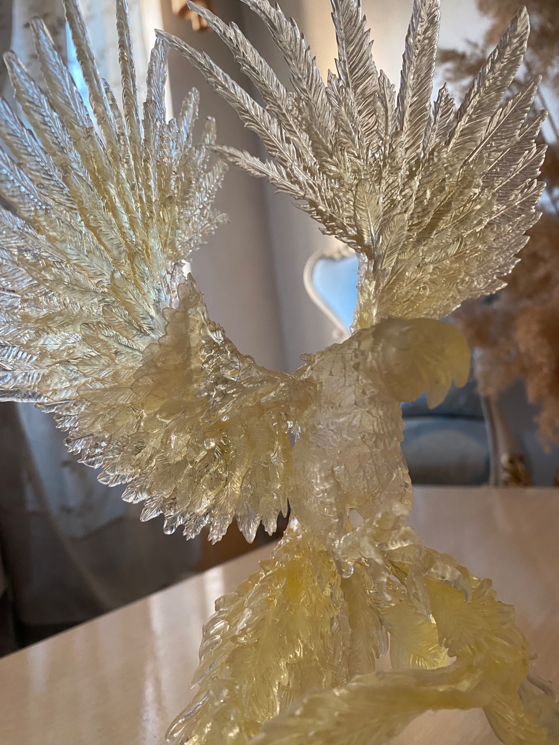 تندیس سیمرغ بلورین یک اثر با شکوه از جنس رزین شفاف یو وی مناسب دکوراسیون کلاسیک و مدرن