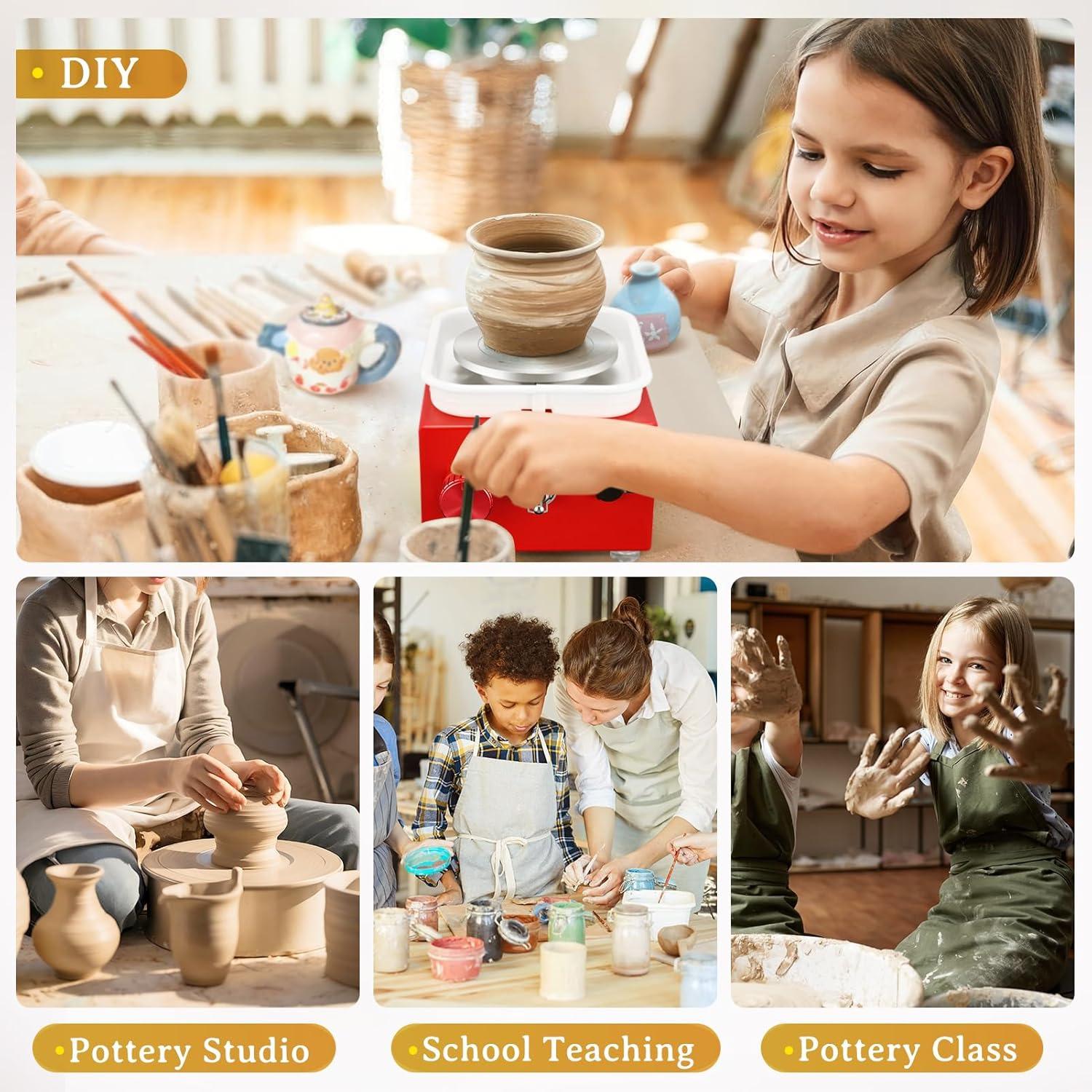 چرخ سفالگری سرامیکی برقی، چرخ سفالگری دوار 2.6-3.9 اینچی، برای کودکان و بزرگسالان، دستگاه شکلدهی سرامیک با مجموعه ابزار سفالگری