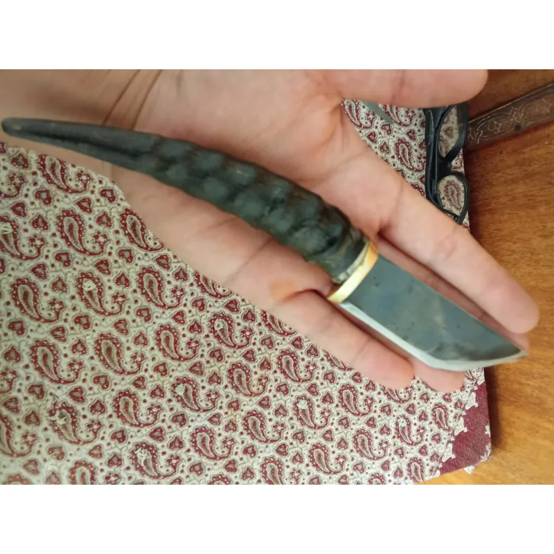 چاقو دست ساز تیغه اره آب صابونی دسته شاخ آهو بدون غلاف فقط نیاز به تیز کردن دارد