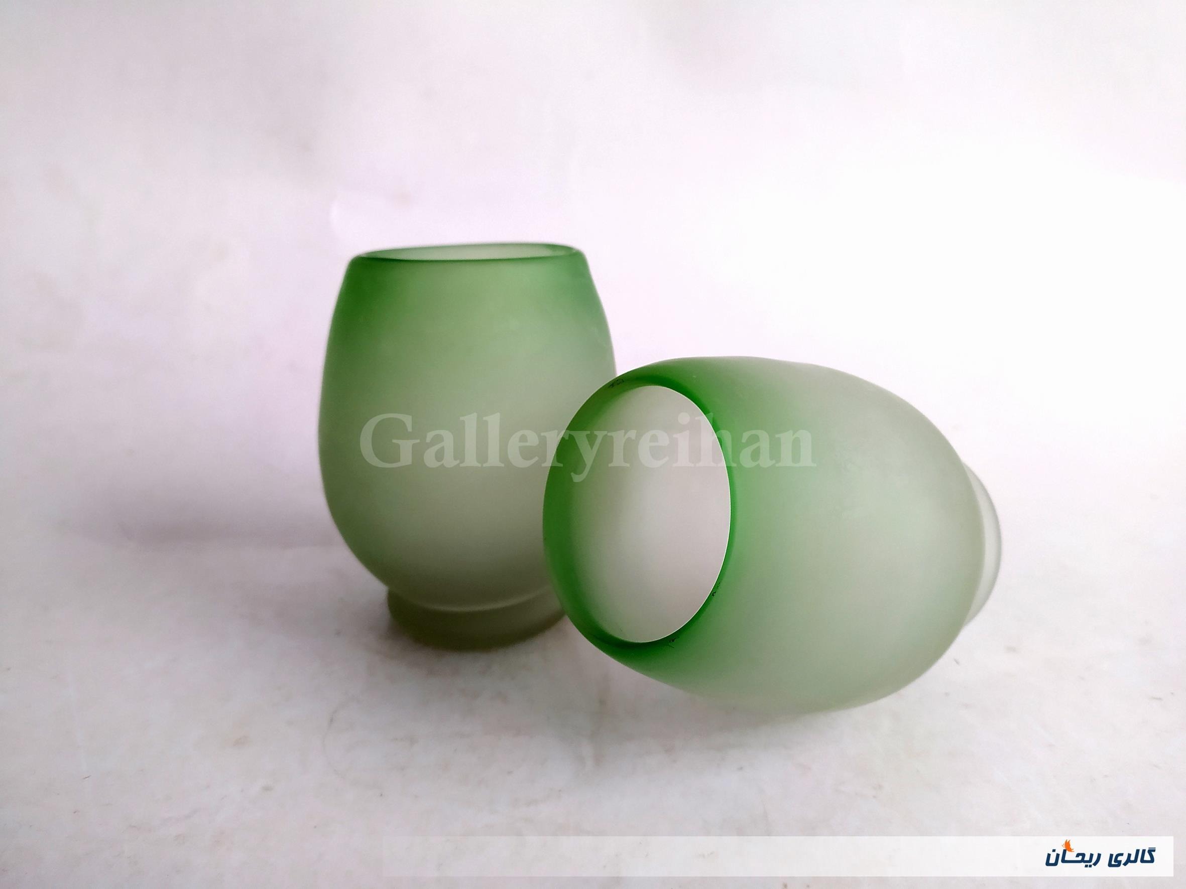 جفت لیوان دستساز قدیمی مات رنگ سبز جذاب (کد47512)