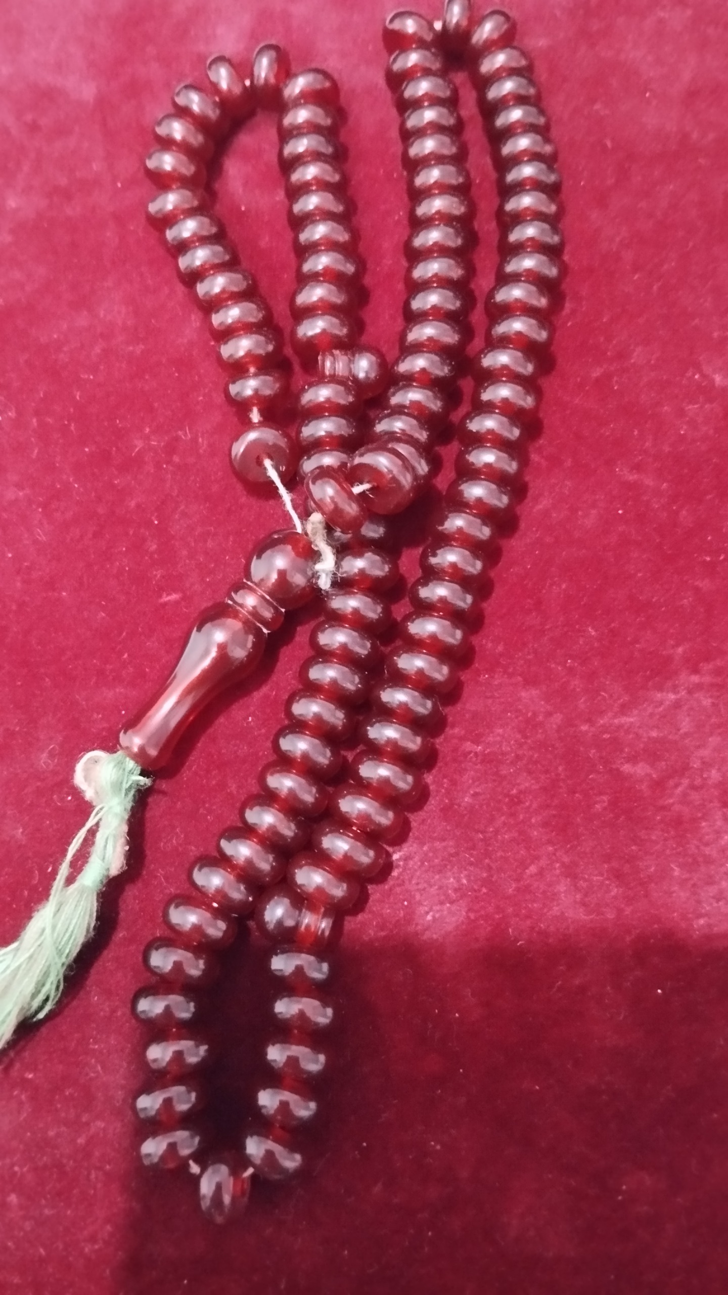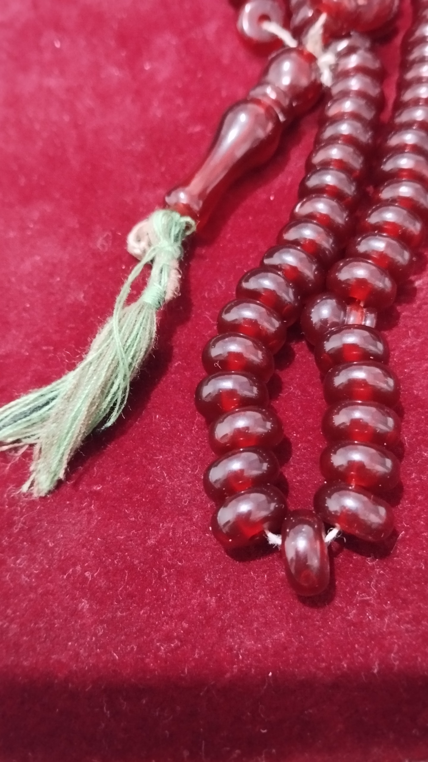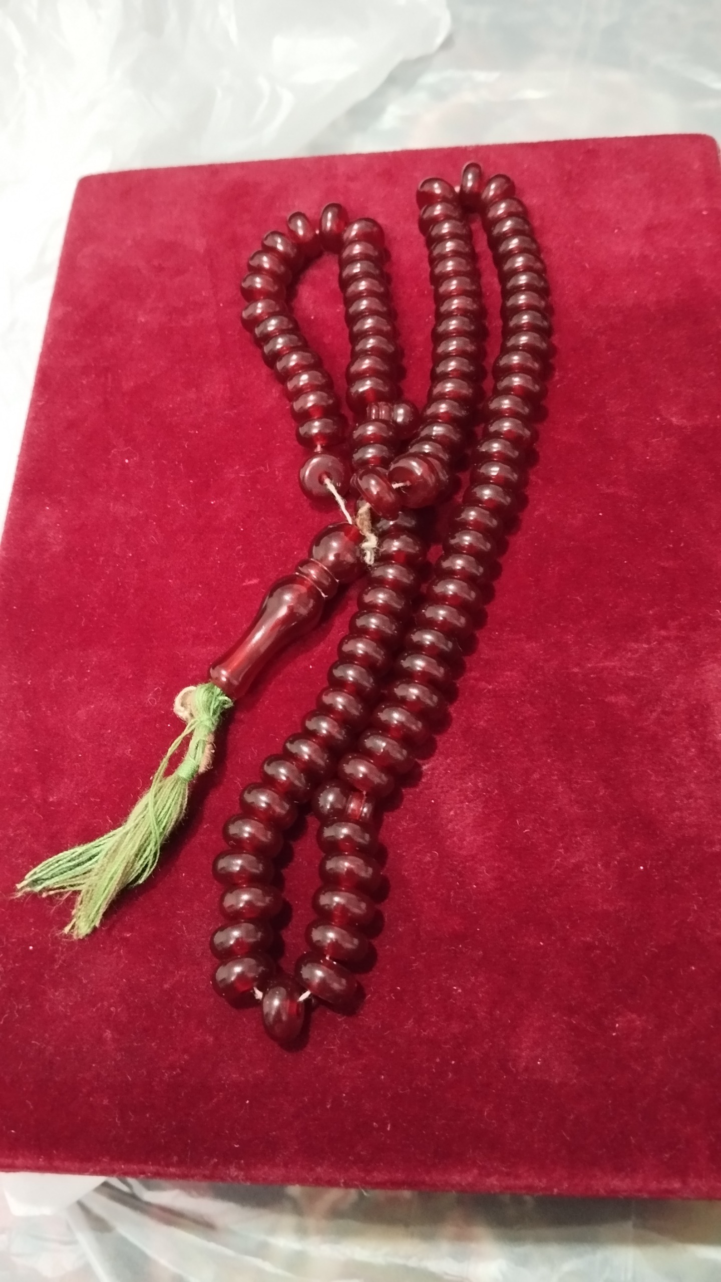 تسبیح قدیمی شبیه پلاستیک هستش نمیدونم جنسش چی چون از تسبی سر در نمیارم چند تا گزینه هارو همینجوری زدم ولی خیلی خوش رنگ و زیباست عزیزان قبل خرید دقت کنید چون مرجویی ندارم