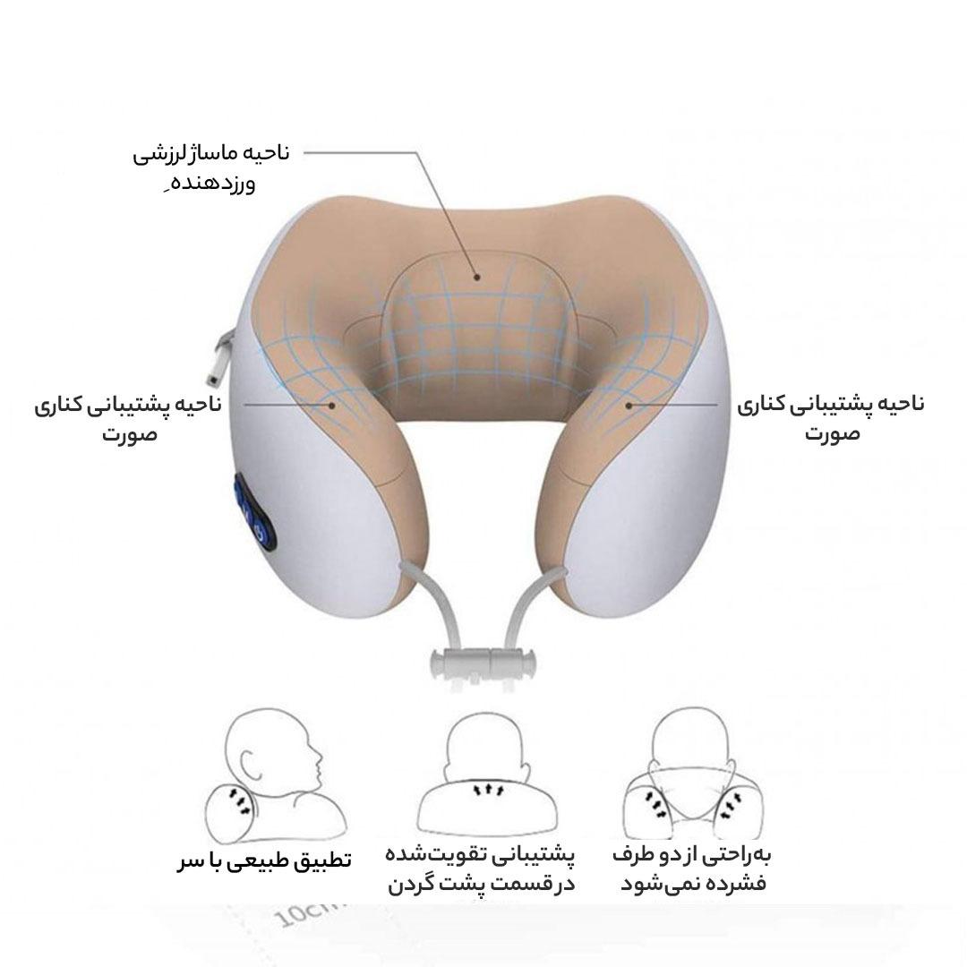 طراحی U شکل باعث میشود گردن و شانهها کاملاً در موقعیت درست قرار بگیرند و همزمان ماساژ ویبرهای، گرفتگی عضلات را کاهش دهد.