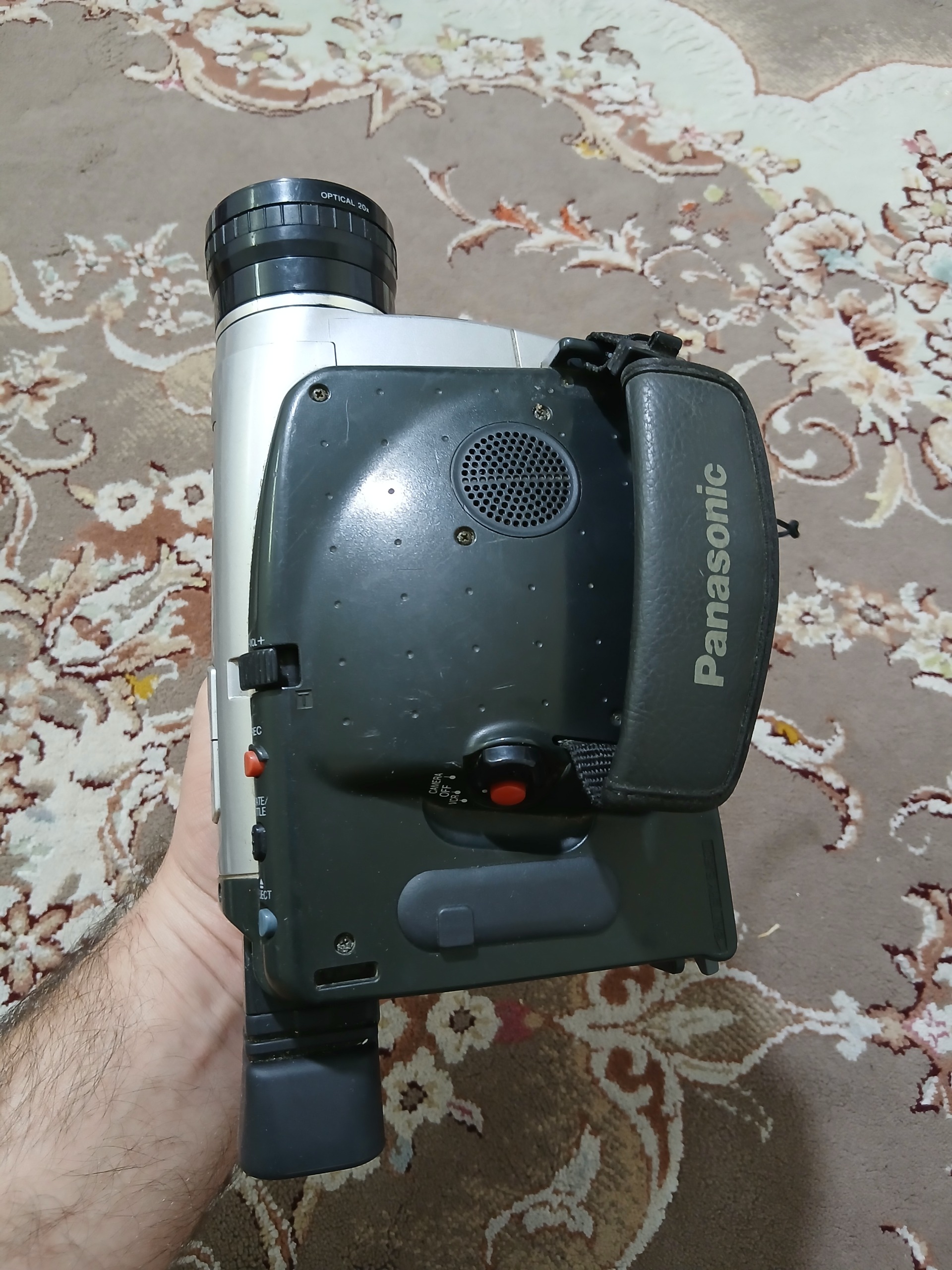 دوربین فیلم برداری قدیمی بزرگ پاناسونیک هست اصلی و از سالم بودنش اطلاع ندارم باتری ندارم و خراب میفروشم ب عنوان دکوری ظاهرو باطن طبق عکس ها