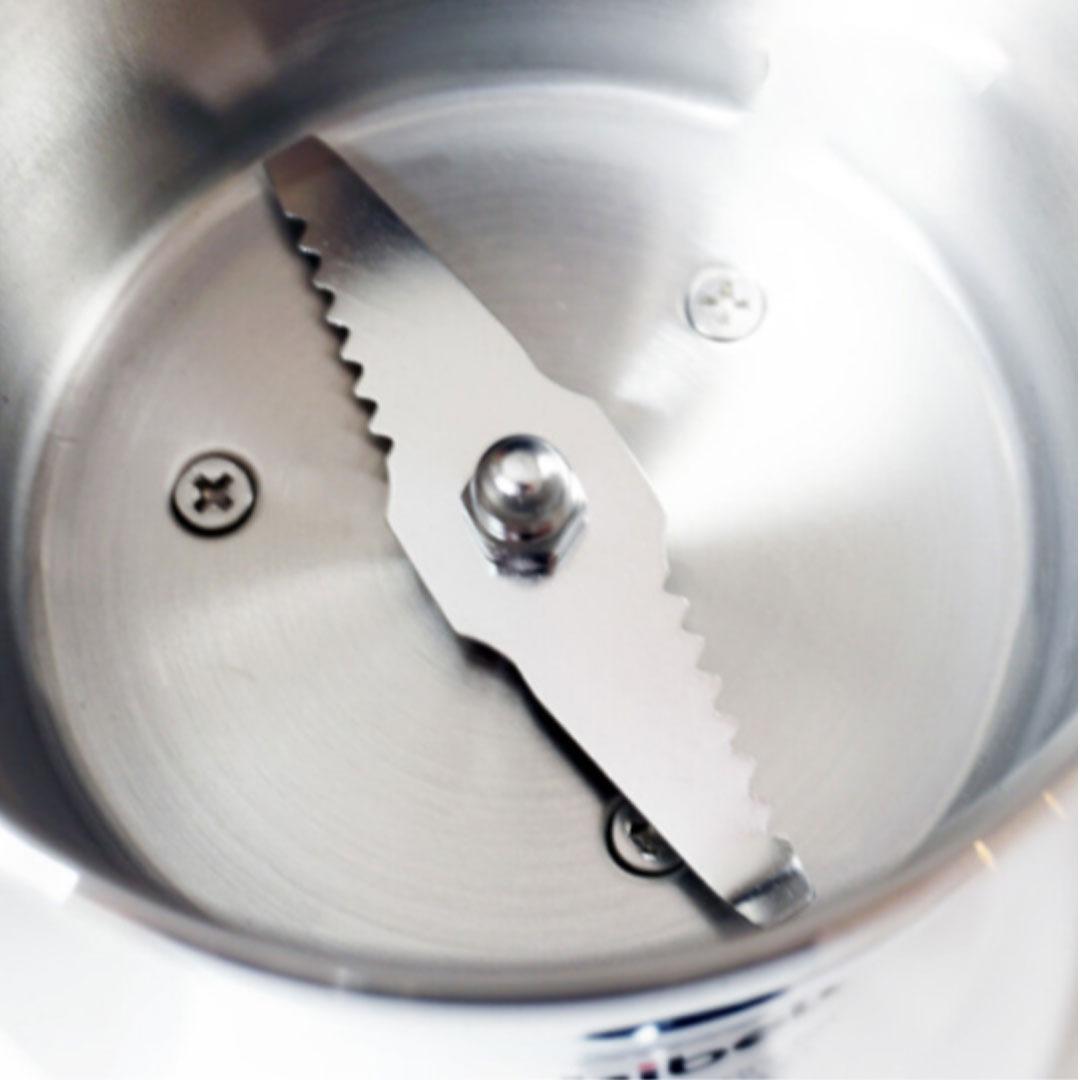 بدنهی این آسیاب از فولاد ضد زنگ ساخته شده؛ یعنی: