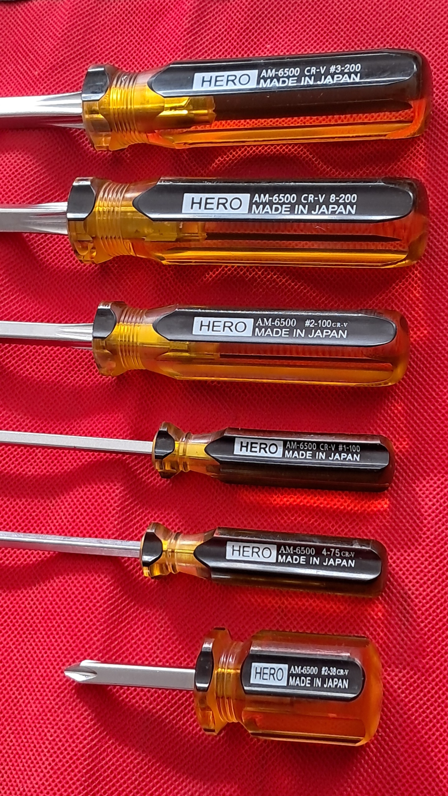 ست 6 عددی پیچ گوشتی هیرو اصل ژاپن غول واقعی سایز بزرگ و گردن کلفت پیچ گوشتیهای تخت و چهارسوی سایز بزرگ این ست به طول 32 سانت میباشند بسیار با کیفیت و زیبا جنس اصلی و اورجینال ژاپن