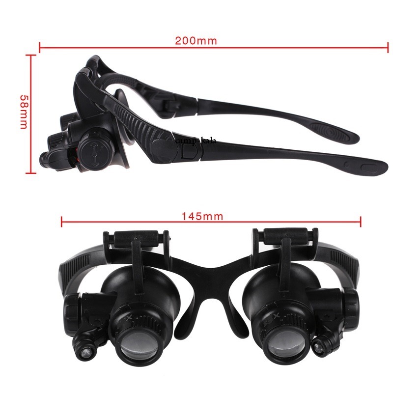 عینک ذره بین دولنزه مدل 98989 با 2 جفت عدسی در سایز های 10 و 20 برابر دارای 2 عدد چراغ LED مستقل: