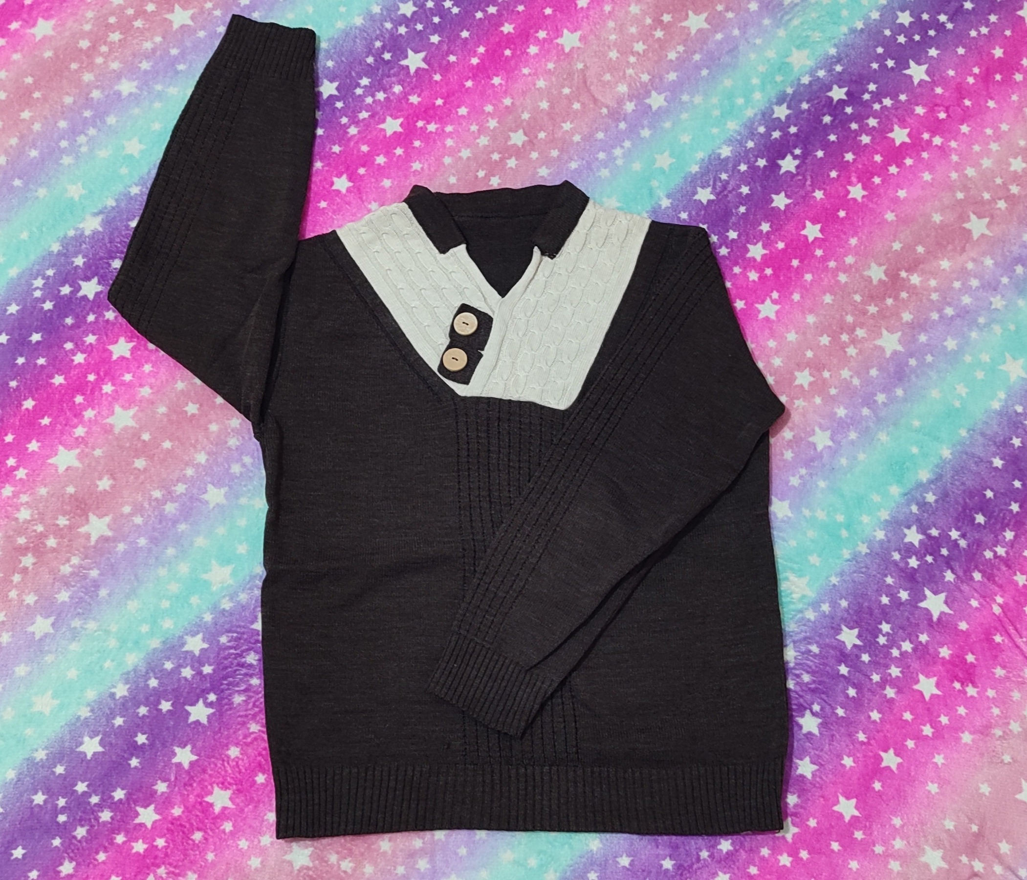 ژاکت یاپلیورمردانه جنس کاموا.طرح دار..دکمه چوبی