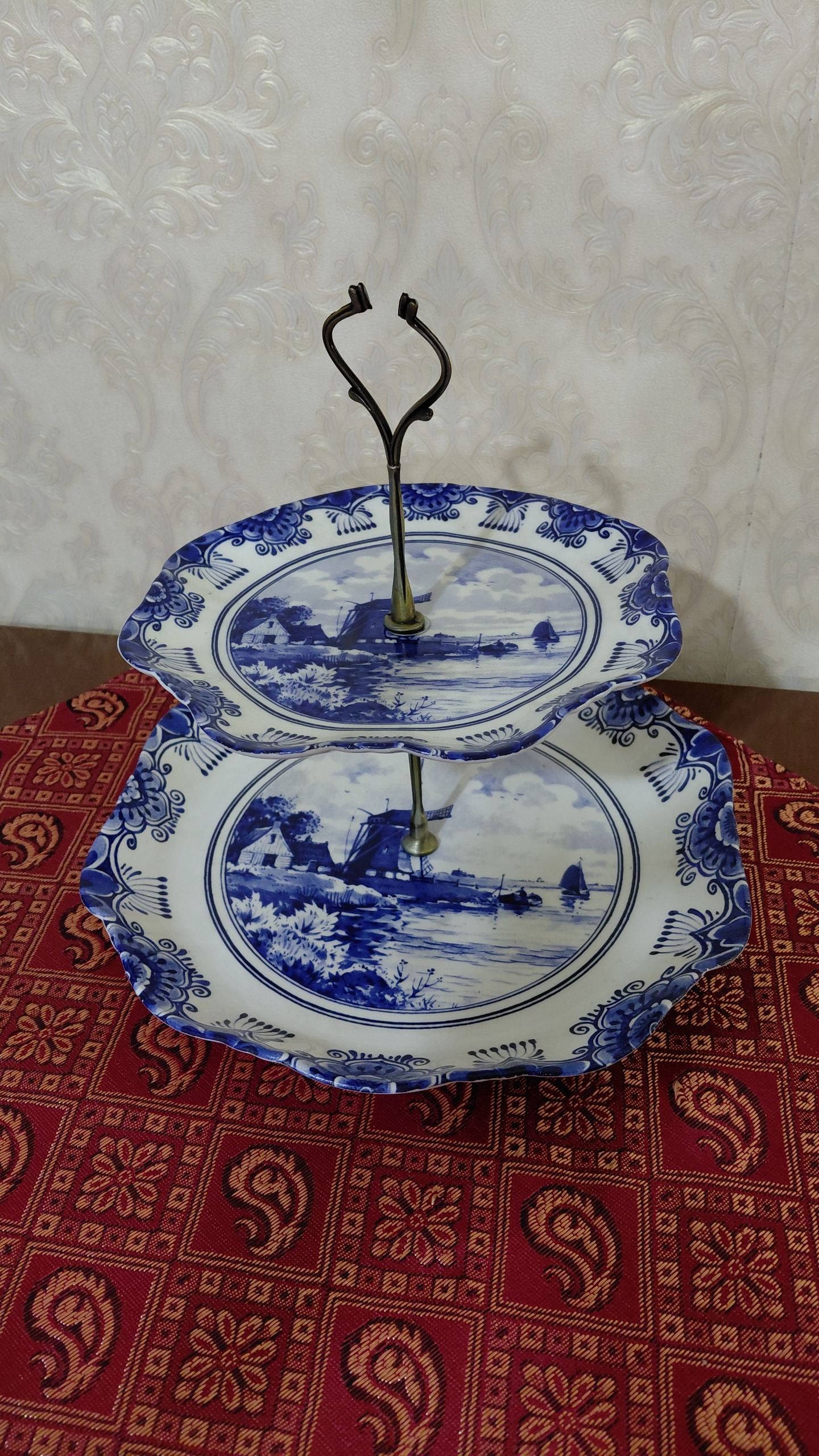 میوه خوری دو طبقه جنس چینی سرامیک مارک دلف هلند .قطر بشقاب کوچیکه 19 سانت و بشقاب بزرگتره 25 سانت.کاملا نونو داخل کارتن.