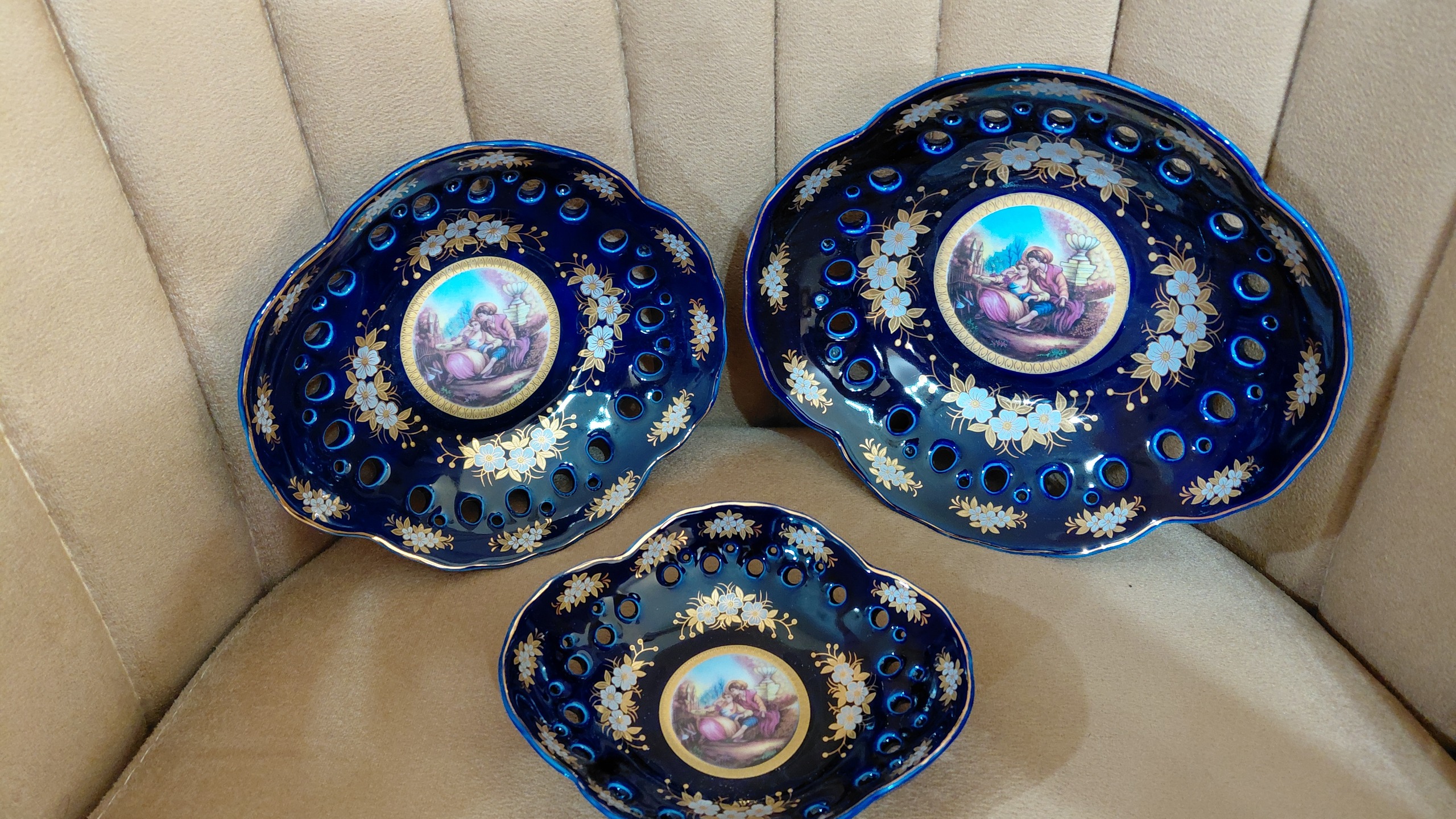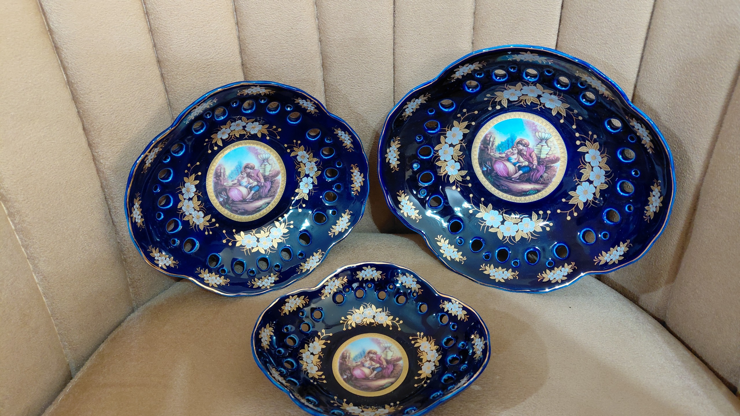 ست 3 تایی تنقلات خوری دور لب توری لاجوردی کاملا نونو داخل کارتن مخصوص خودش. ساخت ژاپن مهر دار.در 3 سایز اعم از: