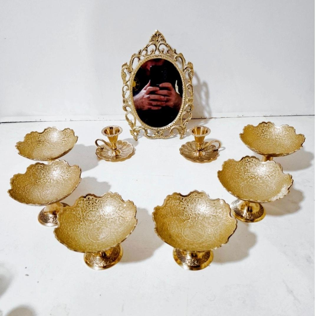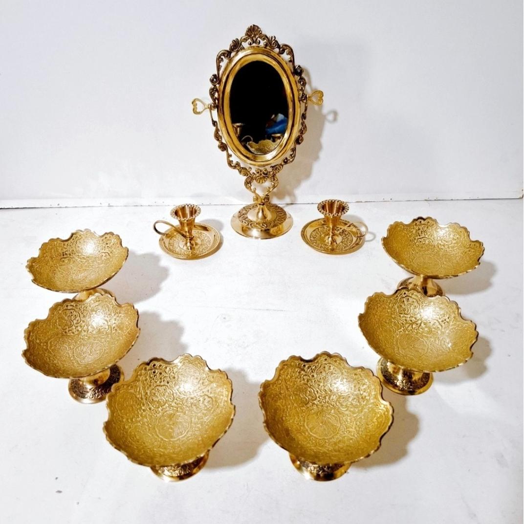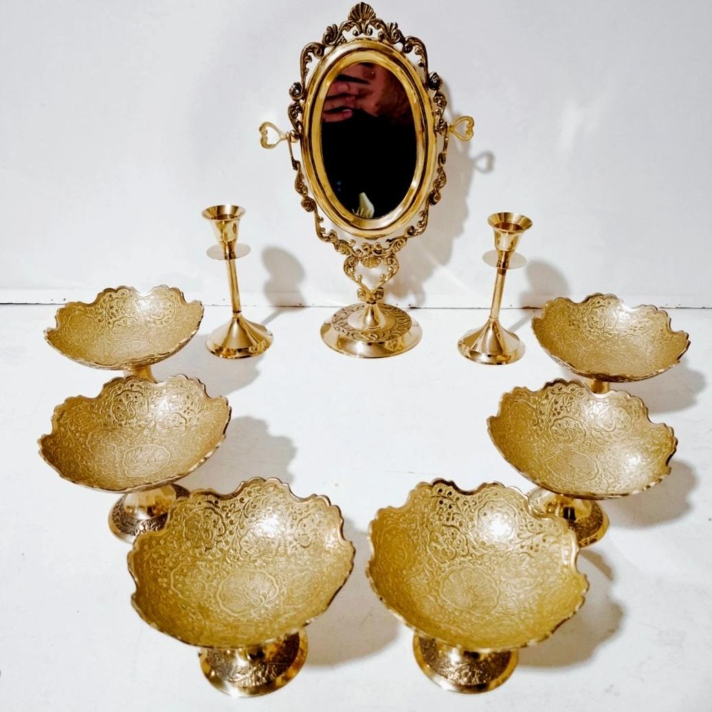 هفت سین برنجی هندی پیاله برنجی هندی آینه و شمعدان