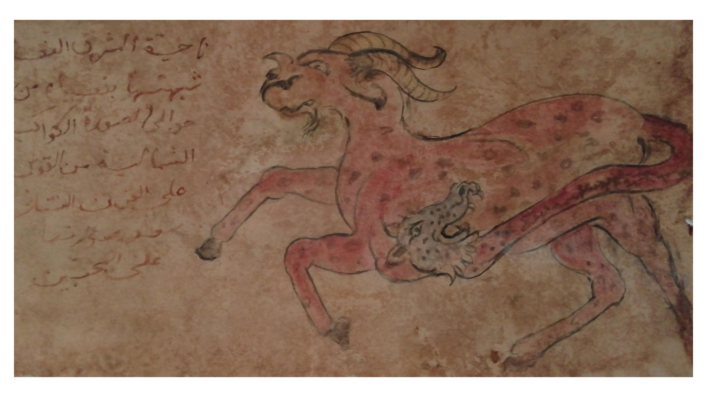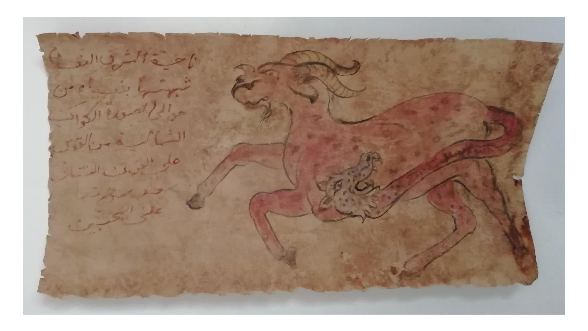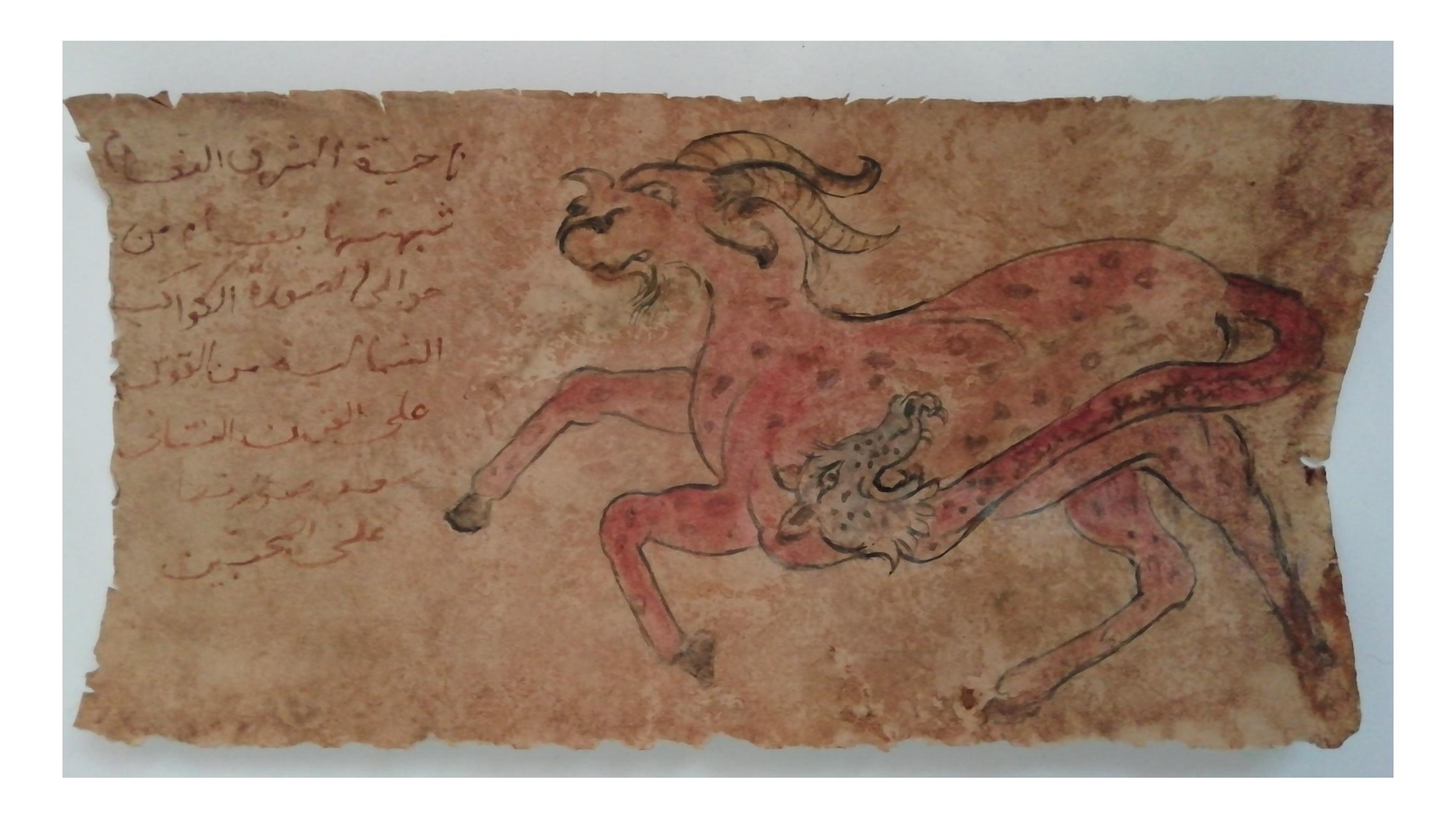( با توجه به نوشته ها و شکل حیوانی عجیب و غریب احتمالا متعلق به یک کتاب یا جزوه نجومی یا طالع بینی عتیقه است! )