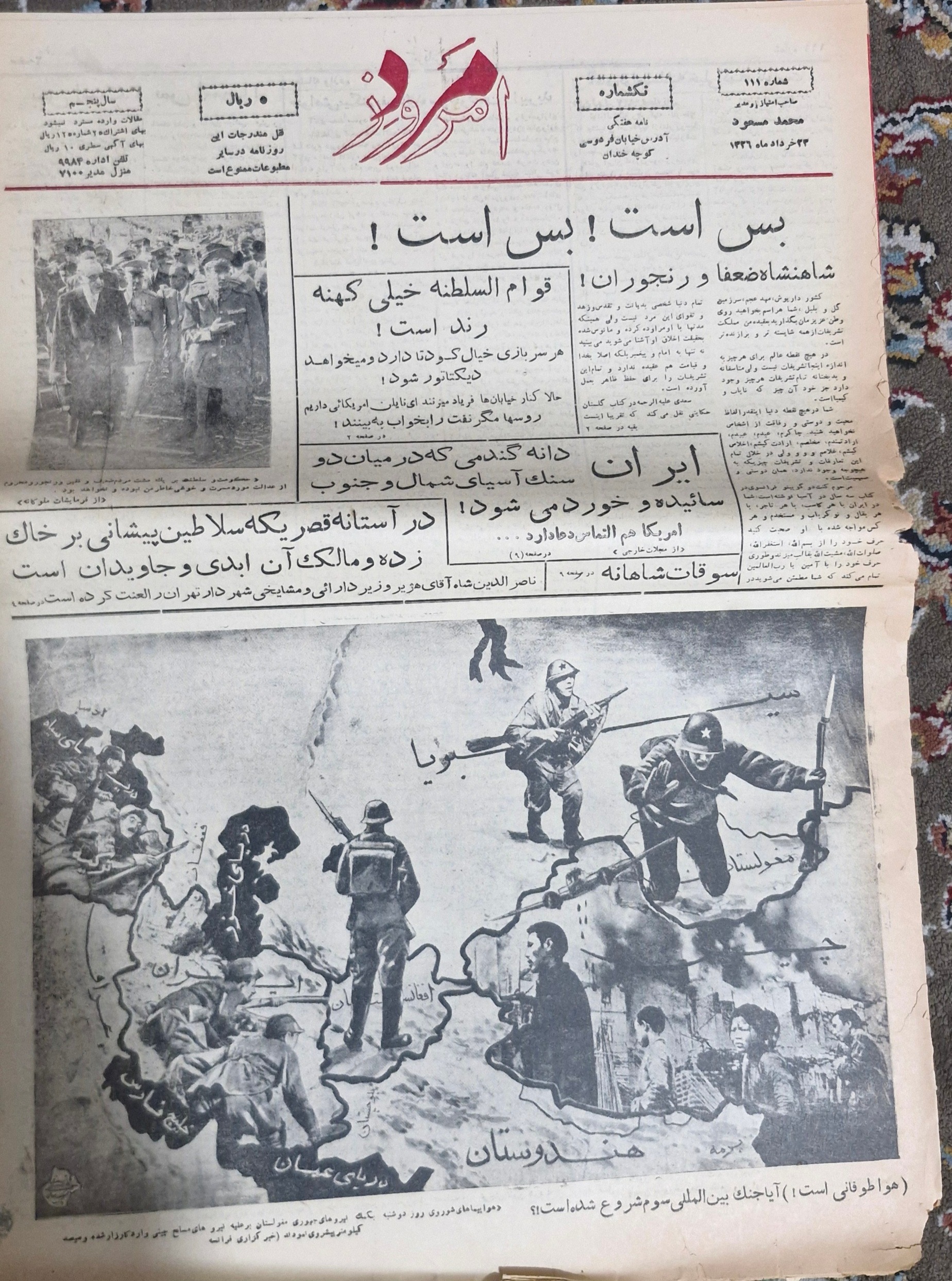 روزنامه طنز مرد امروز محمد مسعود 23 خرداد 1326