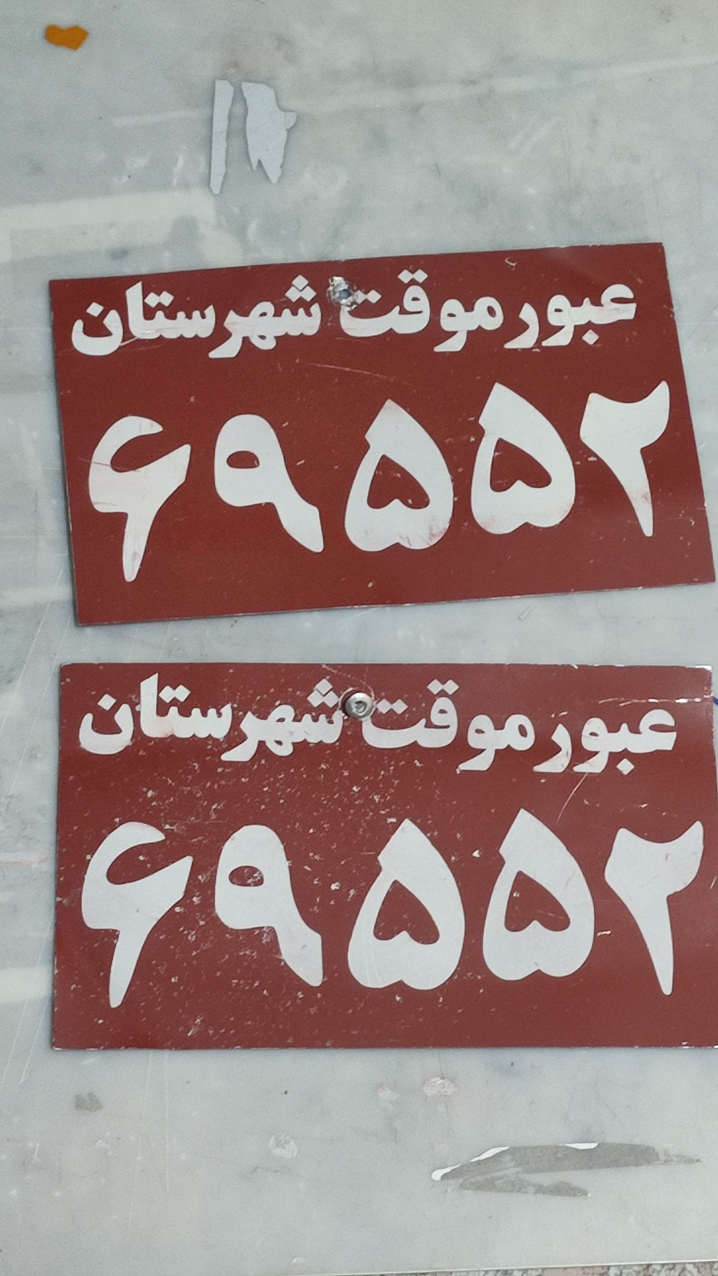 یک جفت پلاک عبور موقت شهرستان