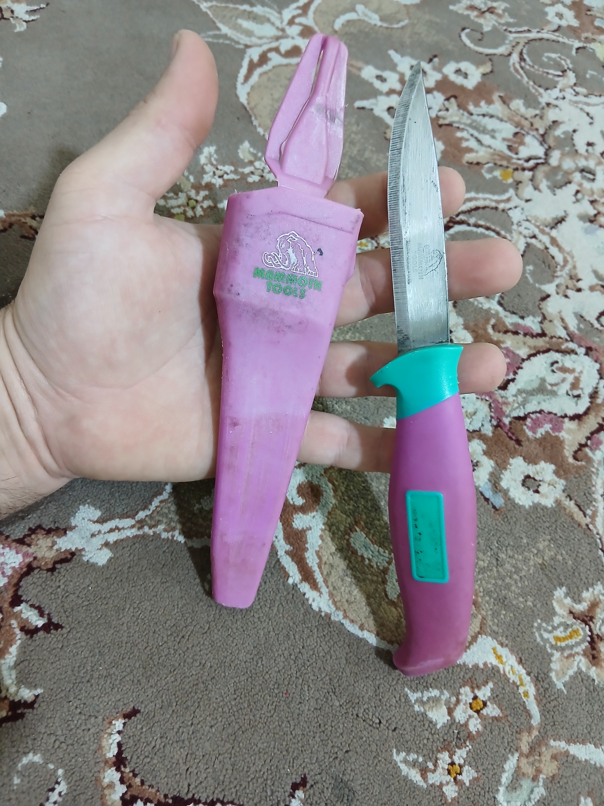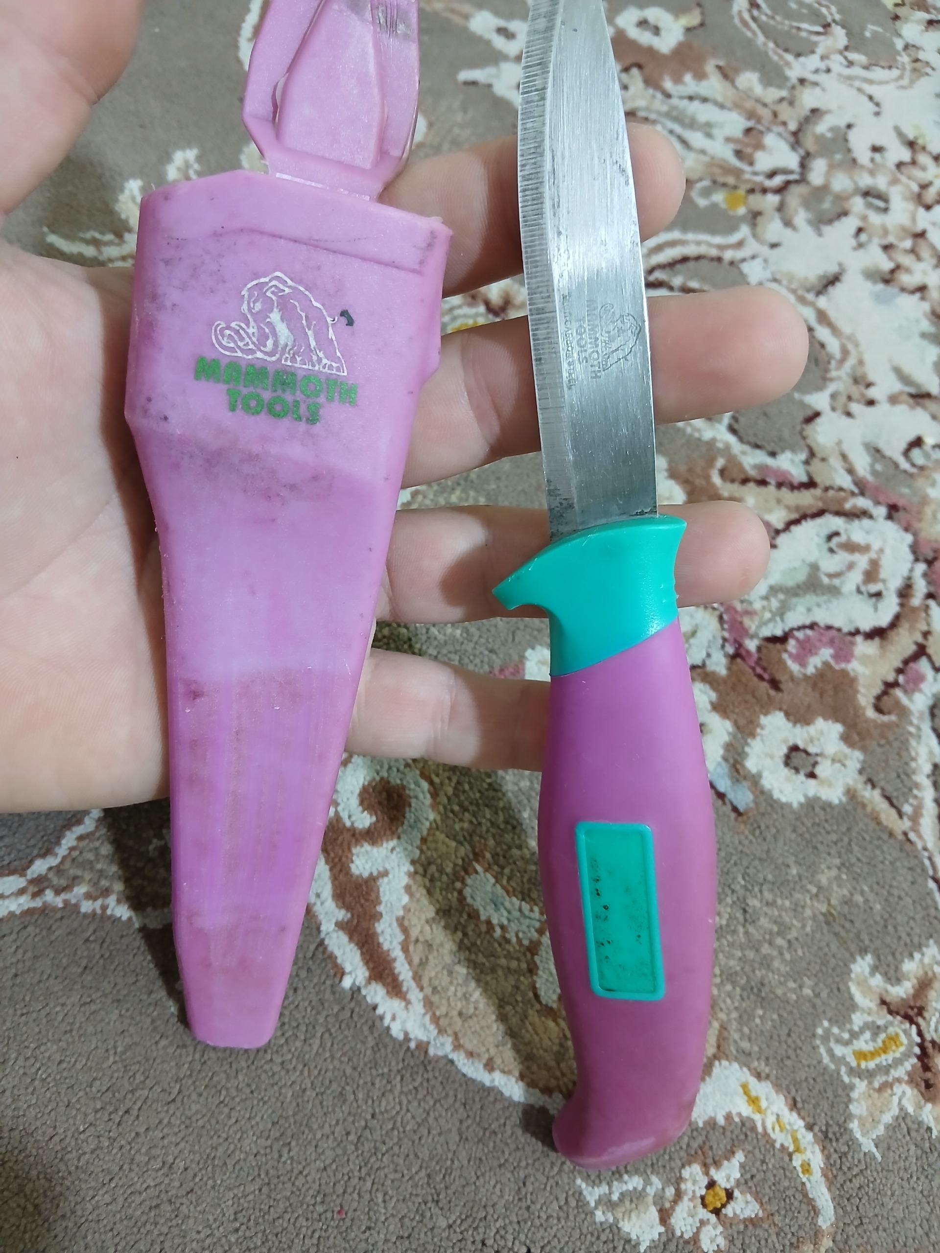 چاقو قدیمی با غلاف خاص و تیغه ضخیمی داره خیلی محکم و تیزه جنس خیلی سختی داره خارجی هست مارک ماموت روش داره هم غلافش ظاهرو باطن طبق عکس ها چاقو کار نکرده تیغه همانند تیغ مشخصات و ظاهر طبق عکس ها لطفا خرید دقت کنید بعد از تحویل قسمت خرید ها لطفا فیدبک ثبت کنید تا پول برای ما آزاد بشه