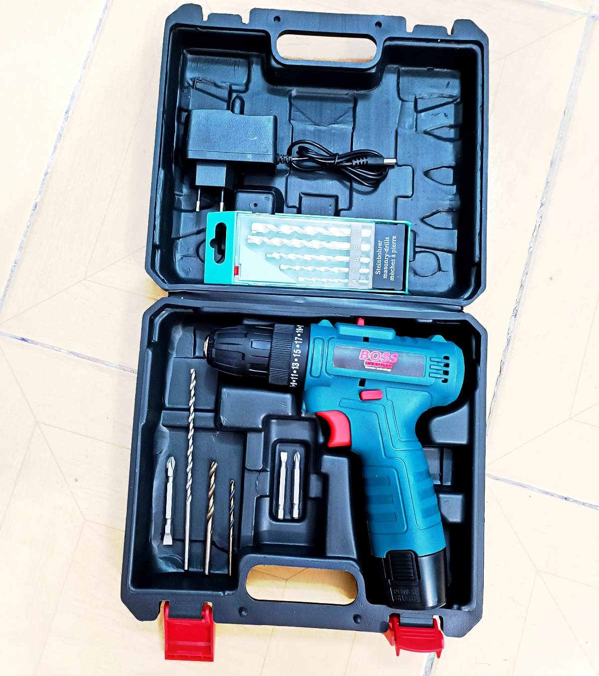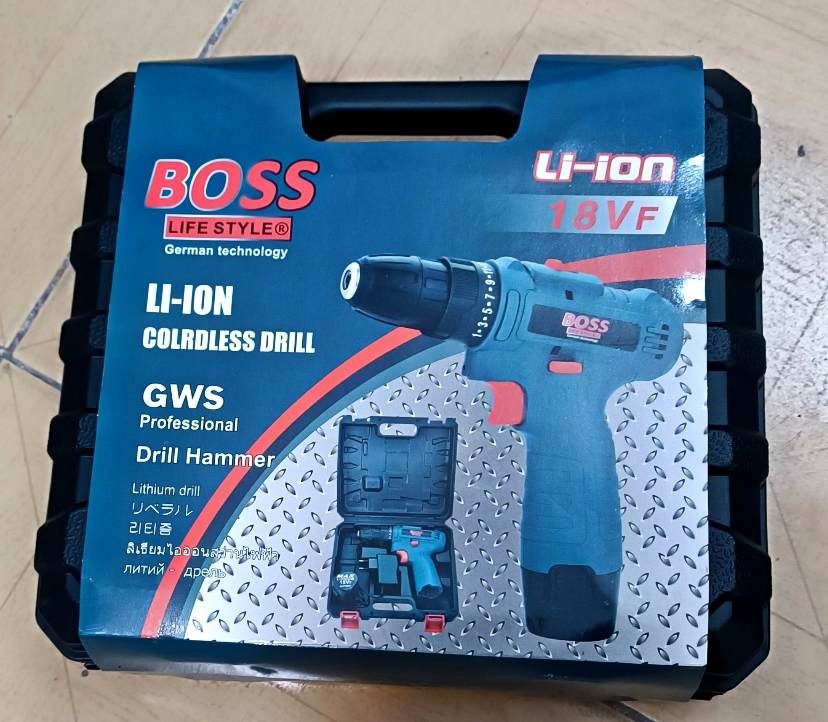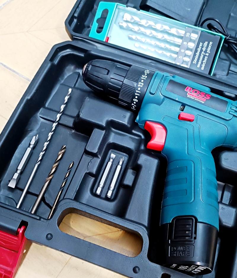 دریل شارژی صنعتی باس با موتور پرقدرت و کیفیت عالی با یکعدد باتری 18ولتی قوی و جعبه نگهدارنده ضد ضربه bmc و