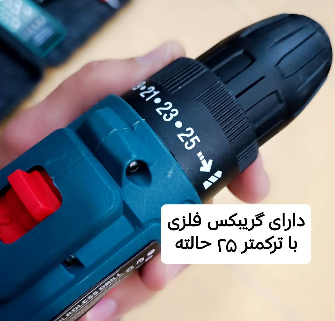 دریل فوق دارای کلید گازی ،موتور بزرگ صنعتی،گیریبکس فلزی با ترکمتر 25حالته میباشد دارای سه نظام سایز 10 ،،مناسب انواع مته کاری و بازوبست کردن انواع پیچ و...