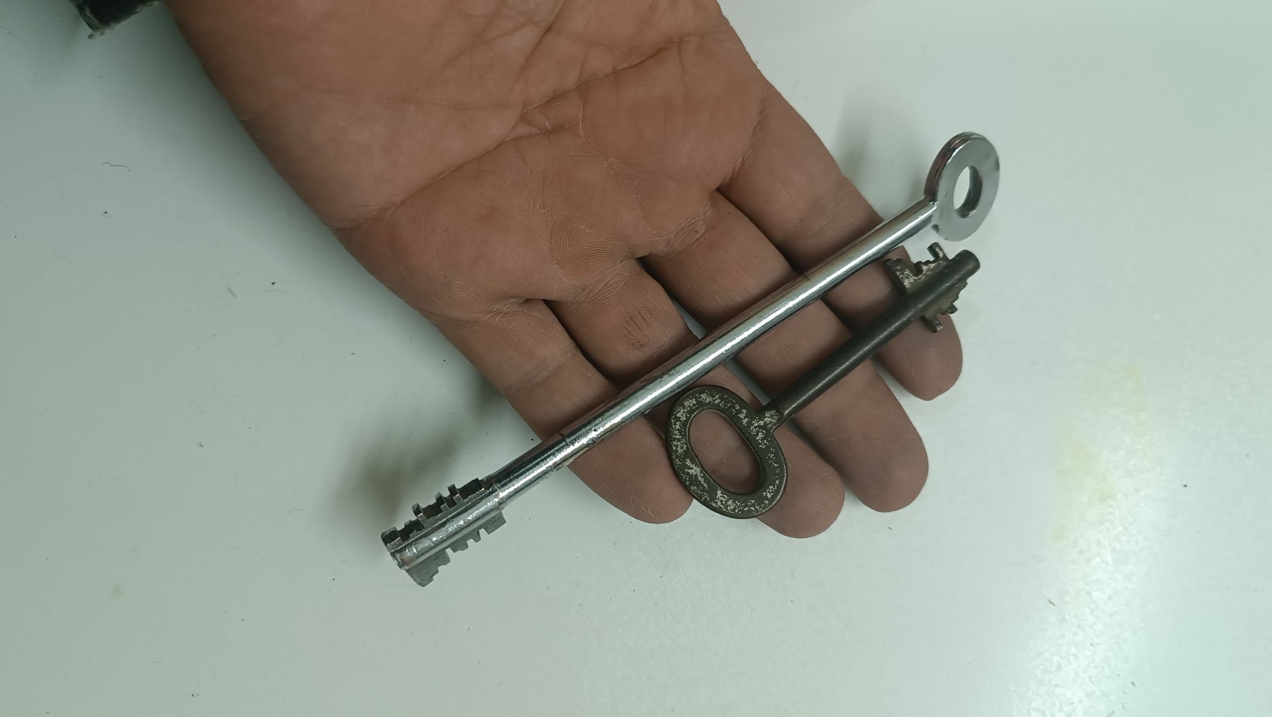 کلید بلند برنجی گاوصندقی و کلید کوچک فولادی قدیمی