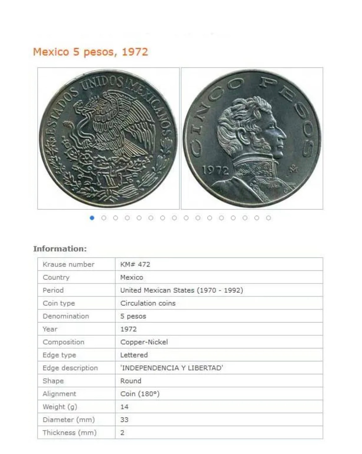 سکه ه پزو مکزیک 1972 (نایاب) 13کَرم