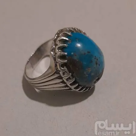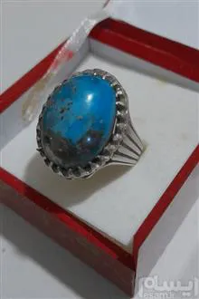 انگشتر نقره 925 با نگین فیروزه کرمانی دست ساز