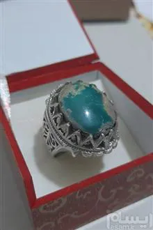 انگشترنقره 925 غول پیکر دستساز با فیروزه کرمان