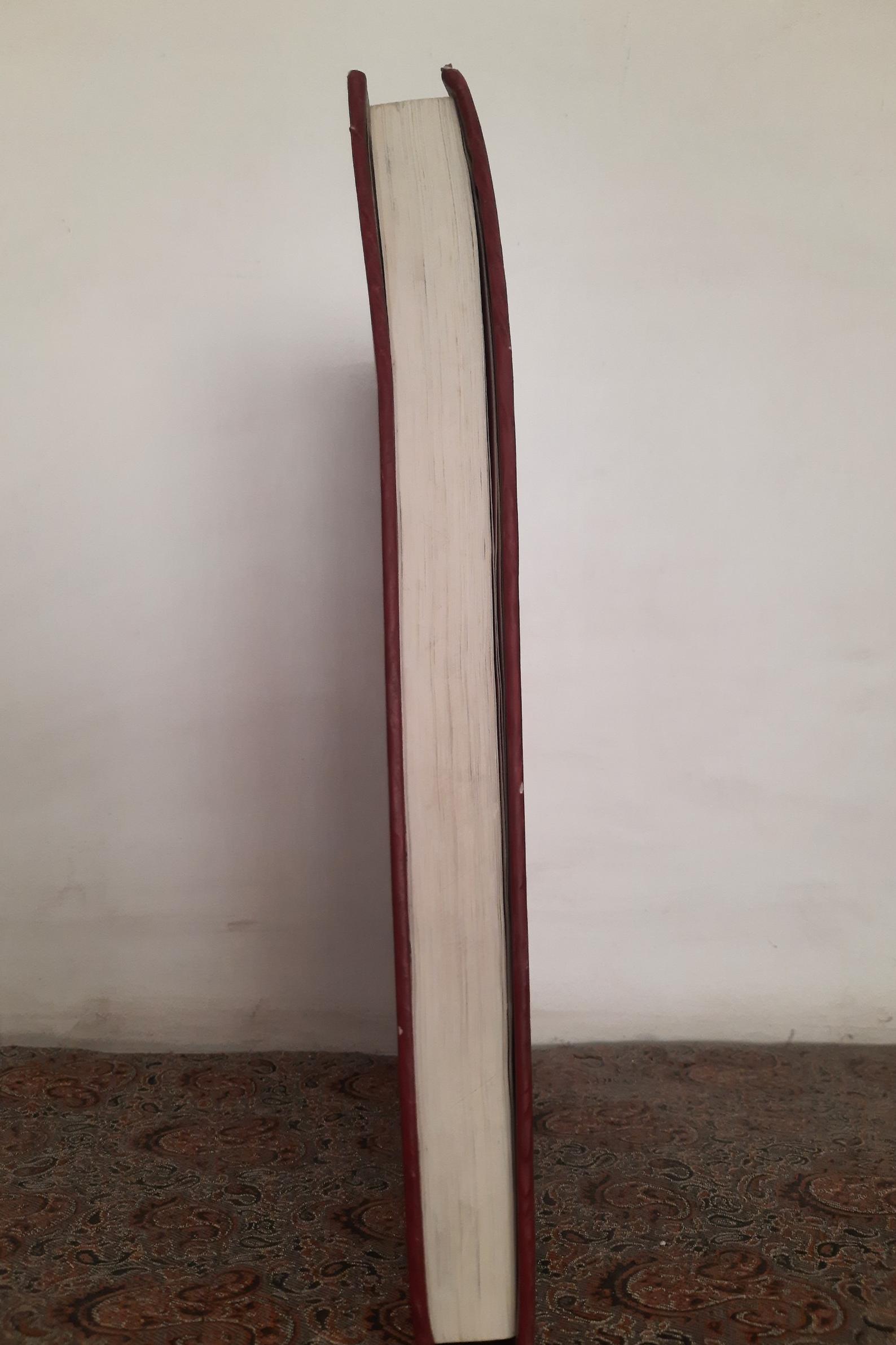 چنانچه در تصویر مشاهده می کنید بالای کتاب کمی خمیدگی دارد. در صفحه اول کتاب مهر کتابخانه شخصی خورده است صفحات کتاب سالم و تمیز و در حد نو می باشد.