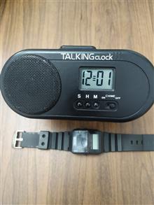 ساعت رومیزی سخنگو درحد نو دارای اعلان قوی وسه حالت آلارم صدای خروس صدای پرنده کوکو وصدای ربات به همراه ساعت مچی سخنگو که از کار افتاده با هم تقدیم میگردد
