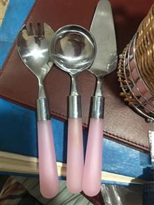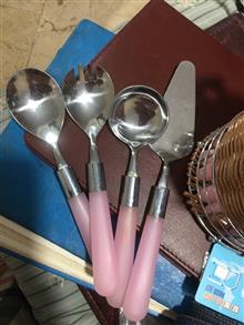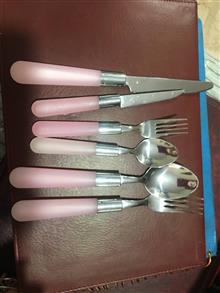 سرویس قاشق و چنگال شش نفره به همراه کارد و چنگال و کفگیر و ملاقه و کارد بزرگ ،نو و دارای استند