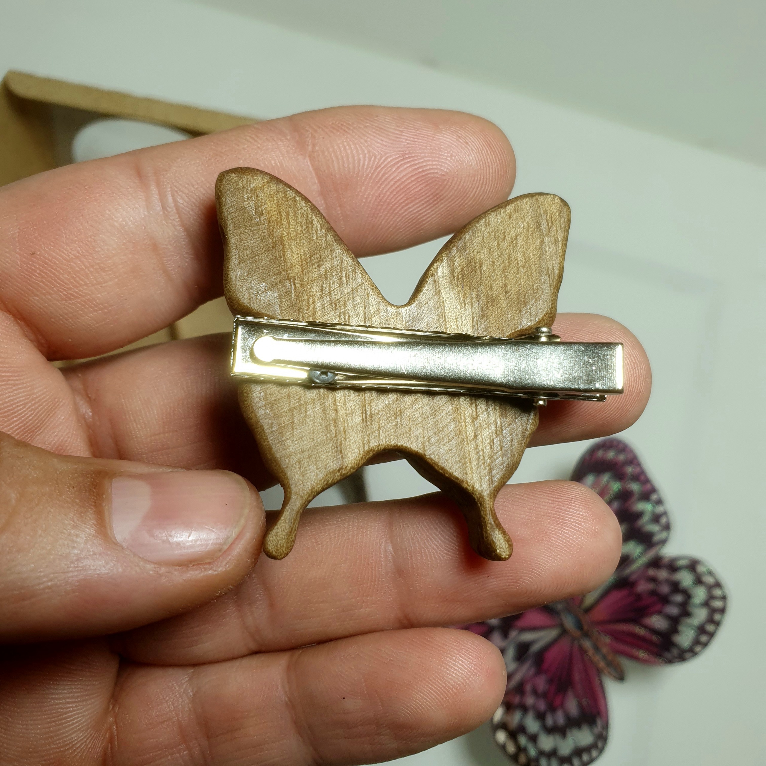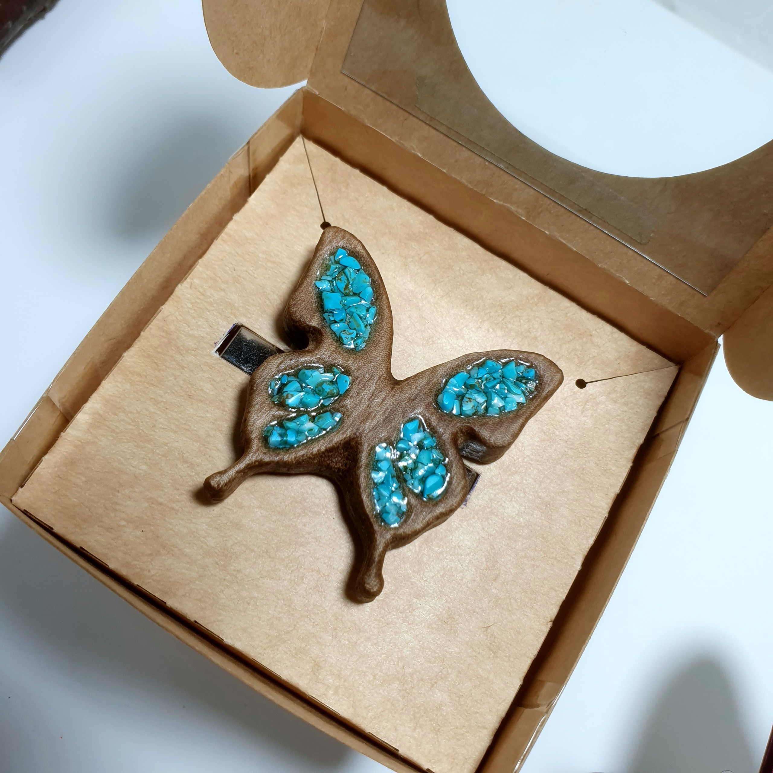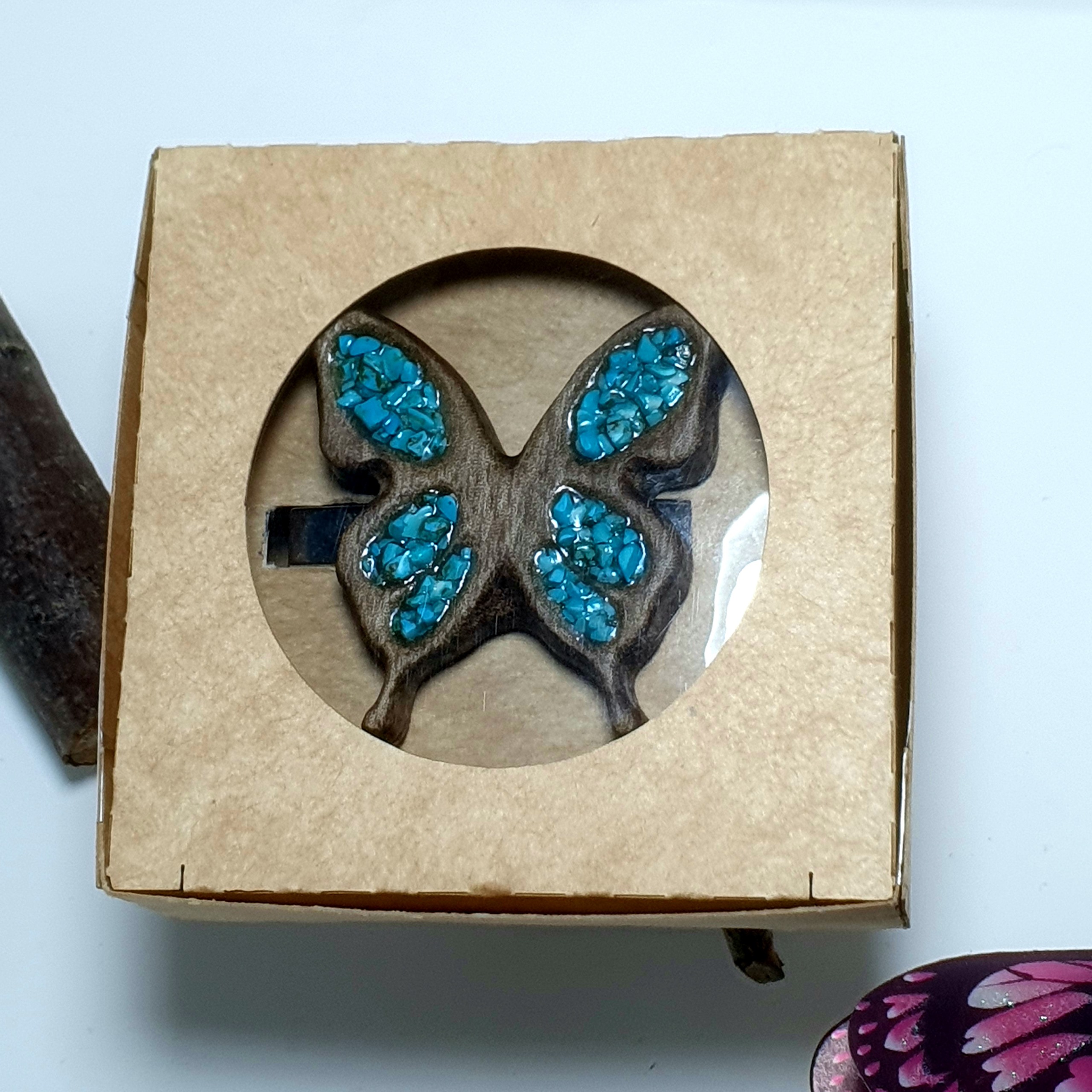 گیره مو چوب و فیروزه مدل پروانه