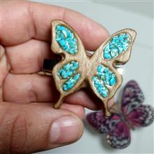 گیره موی سر چوب و فیروزه مدل پروانه