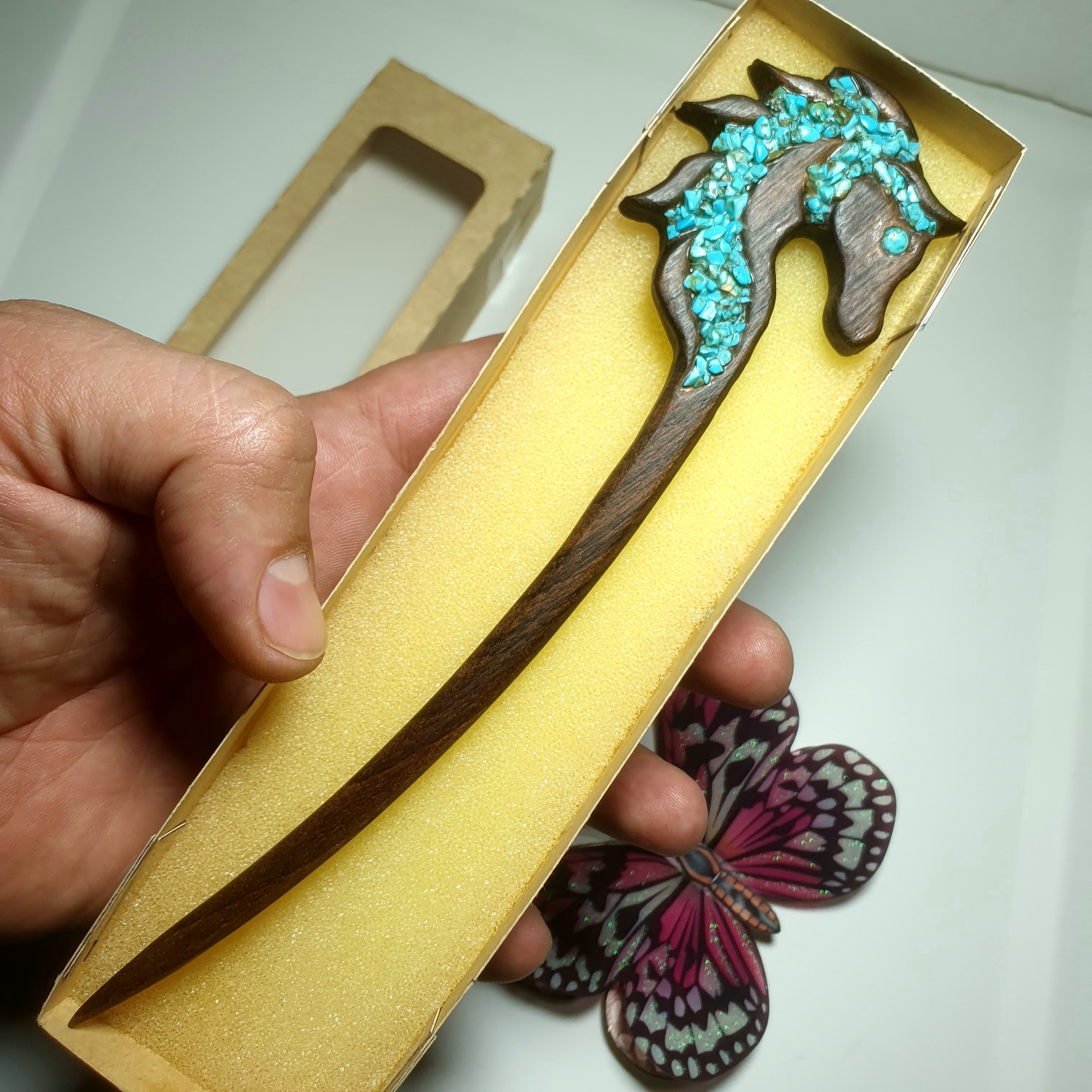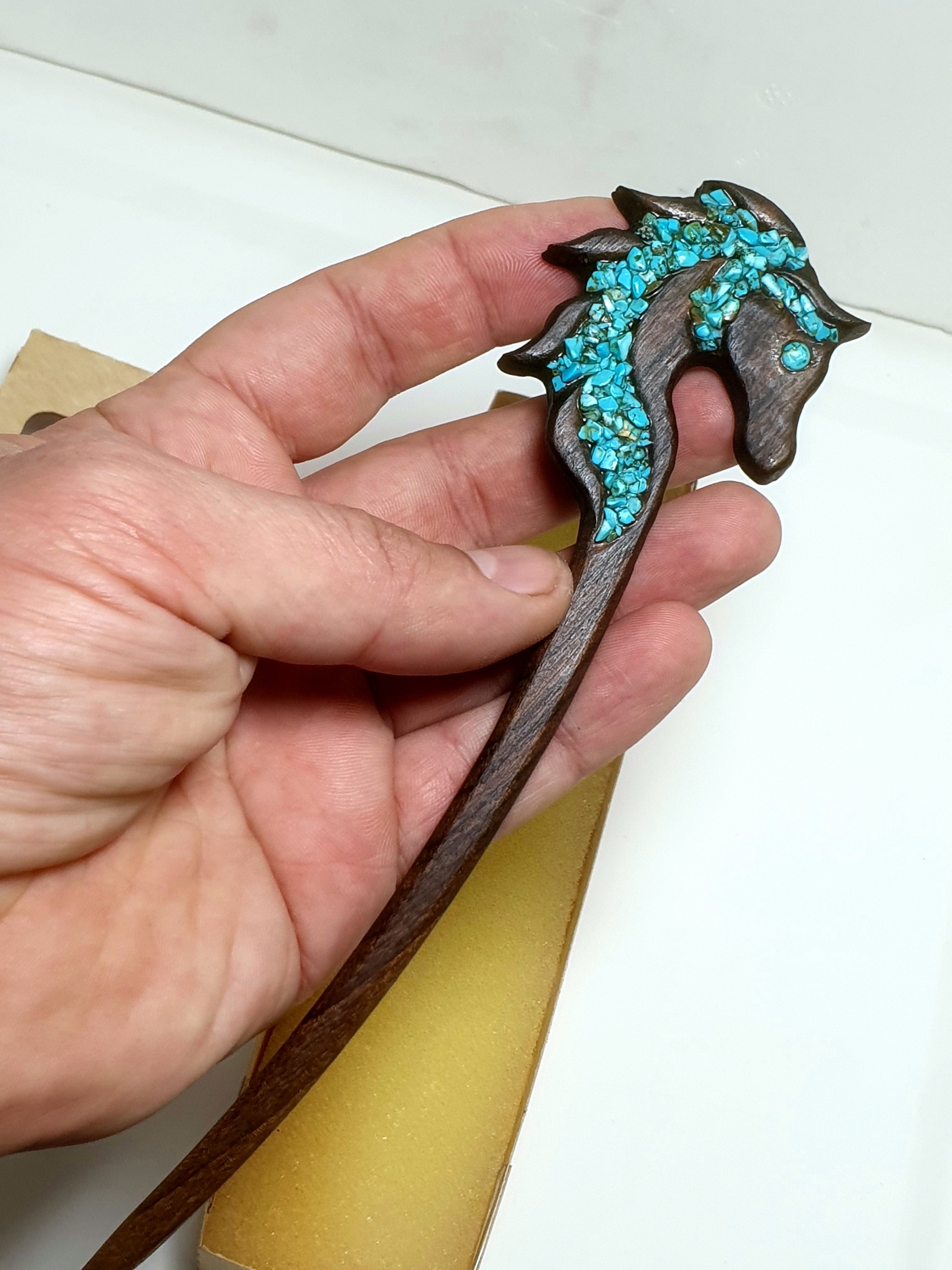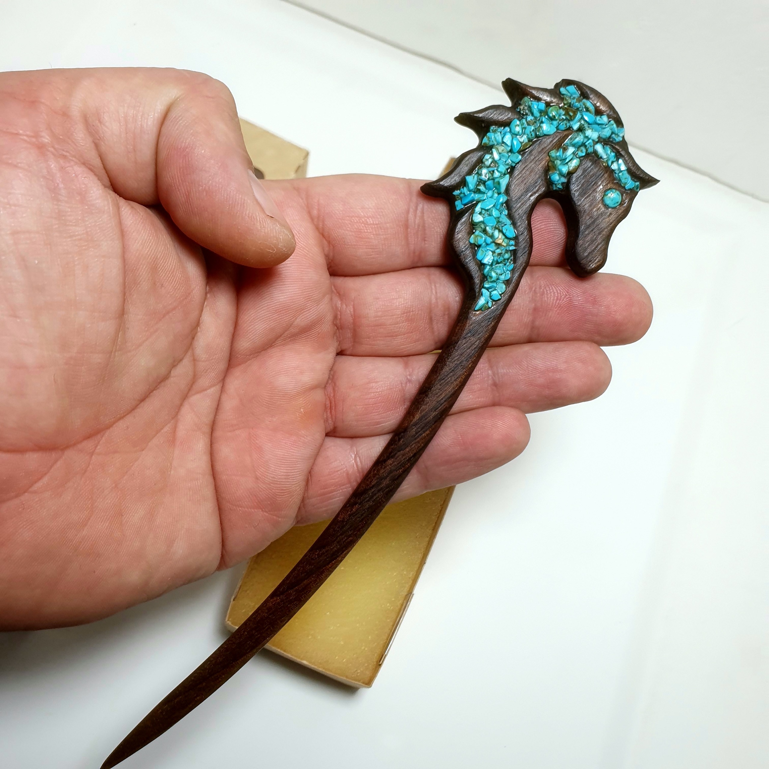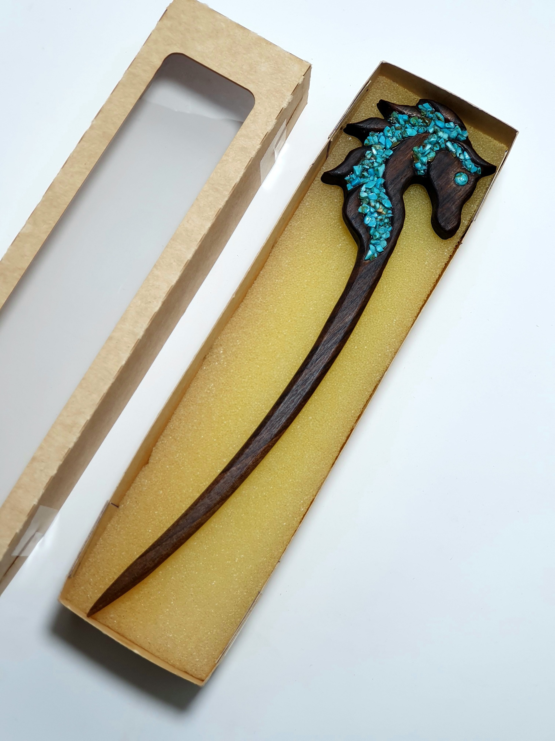 پین موی سر چوب و فیروزه مدل اسب تک شاخ