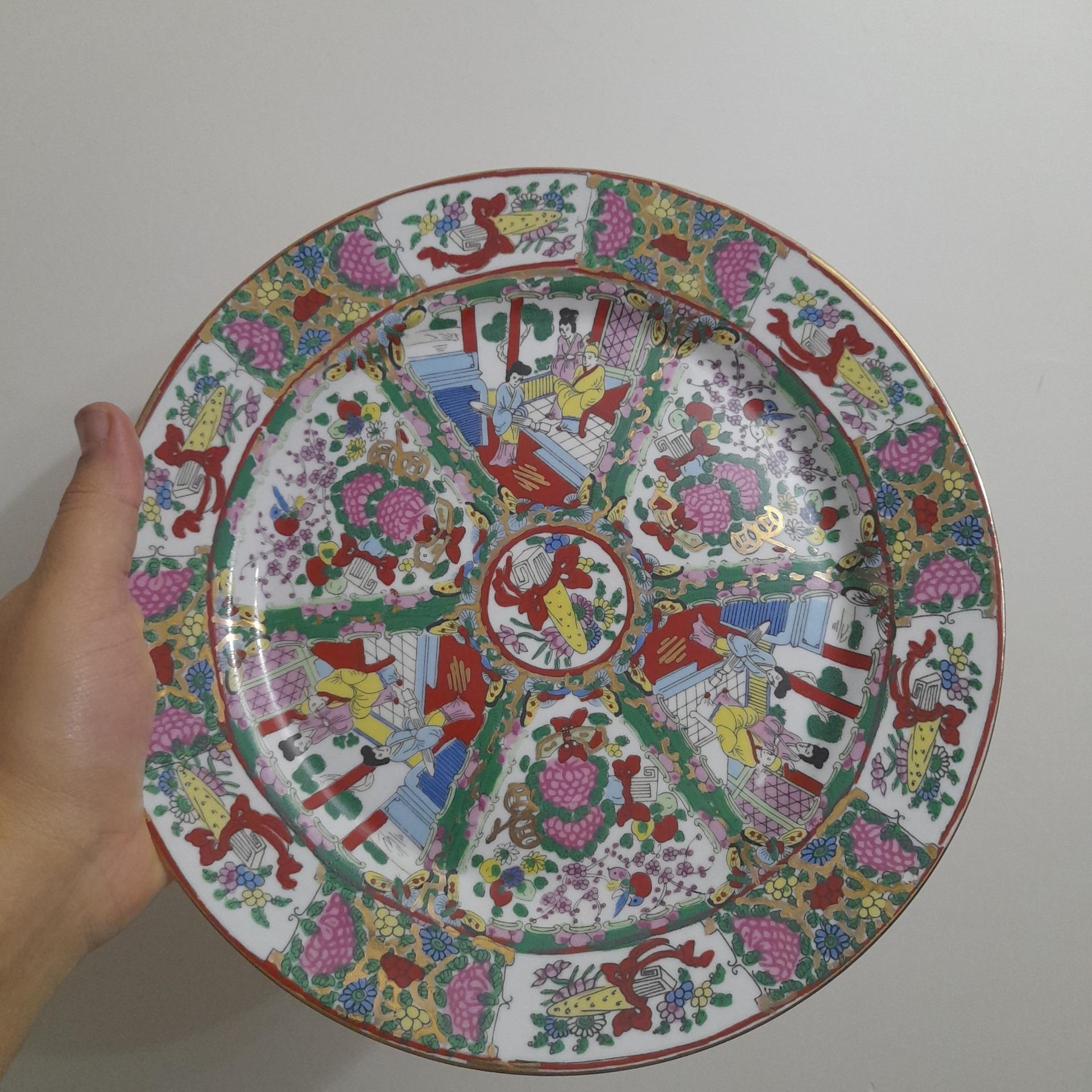 بشقاب گل مرغی قدیمی نقاشی و طلا کوب قطرشت 25 سانت هستش بسیار زیبا و کلکسیونی