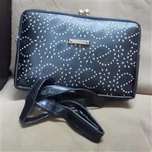 کیف زیبای نگین دار زنانه رودوشی یا زیر بعل کاملا نو هنوز در لفافه قرار دارد کادویی بوده ایت مخصوص زیبا پسندان ابهاد 25 در 15 .