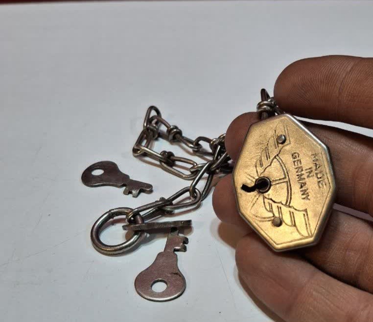 ساخت قدیم کشور آلمان مدلی خاص و کمیاب با دو کلید یدکی کلکسیونی یا دکوراسیونی سالم تمیز طبق تصاویر لطفا دقت فرمائید.