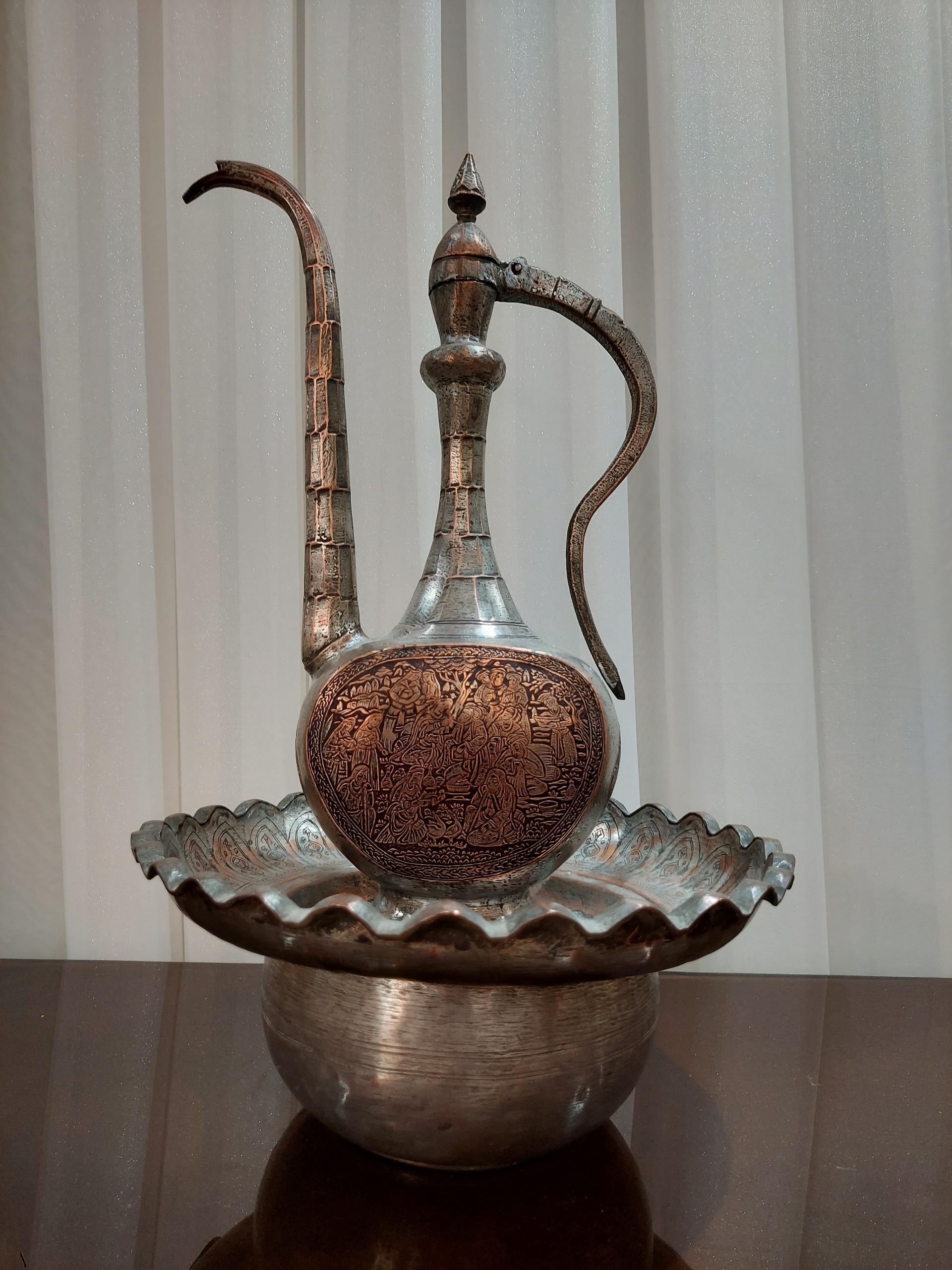 آفتابه لگن بینظیر تمام قلمزنی سایز بزرگ تراش دار
