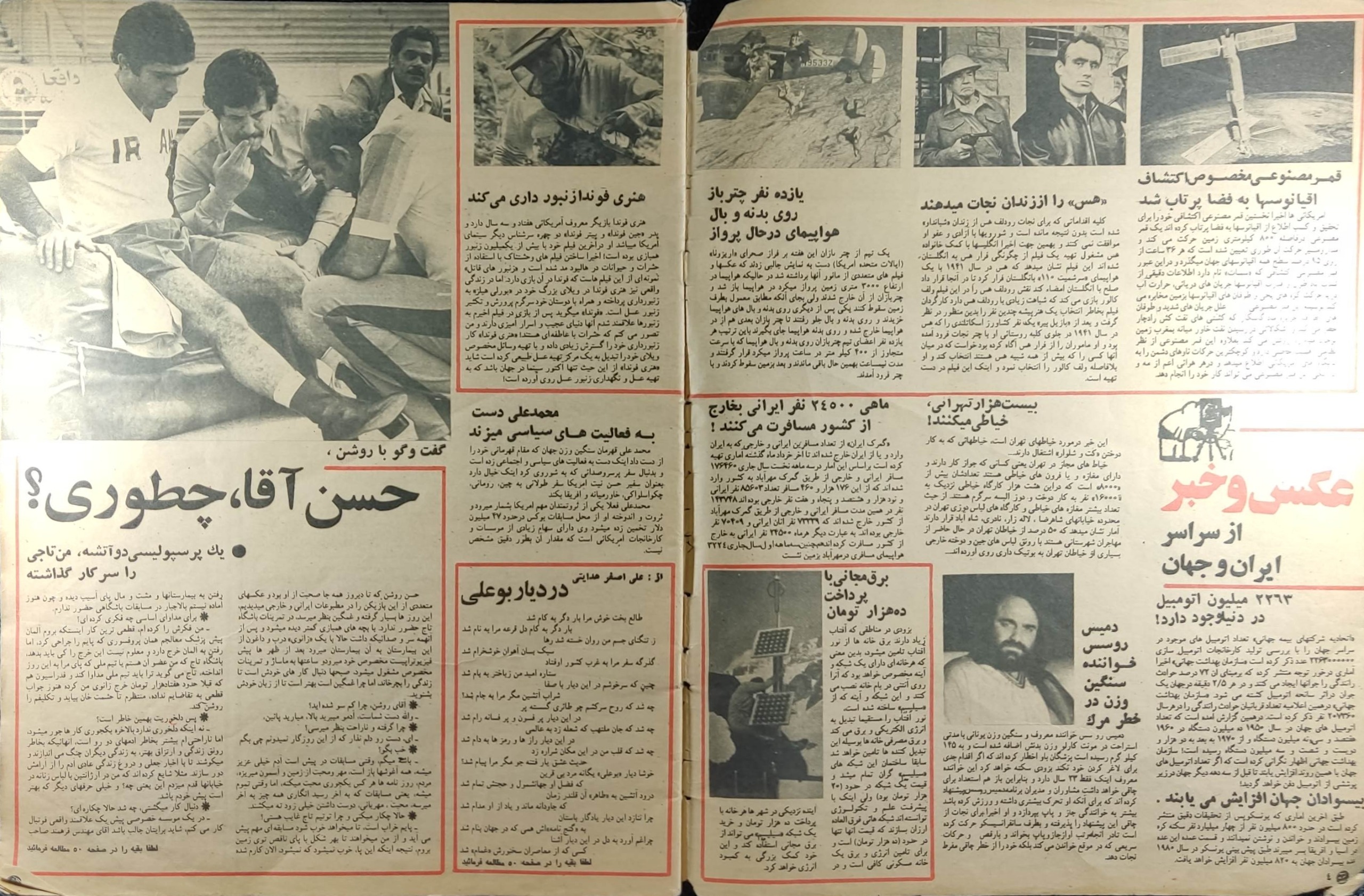 مجله تبلیغات از تبلیغ یخچال الکترو لوکس گرفته تا تبلیغ فندک زیبای دپون از مدل عکس تا تبلیغ شاپو چند عکس تبلیغاتی دیگه داره که نشد بزارم براتون گفتگو با حسن روشن در مورد پرسپولیس و استقلال تا پرتاپ ماهواره از جنگ جهانی اول از رپورتاژ ماه رمضان خلاصه این که یه مجله فوقالعاده زیبا با ارزش تعداد صفحات هم خیلی زیاده همه صفحات عکس و سرگرمی داره از جدول گرفته تا رومان عشق دو عاشق..جوک و خنده بازار هم داره ..باز اگه سوالی داشتید بپرسید من در خدمتم