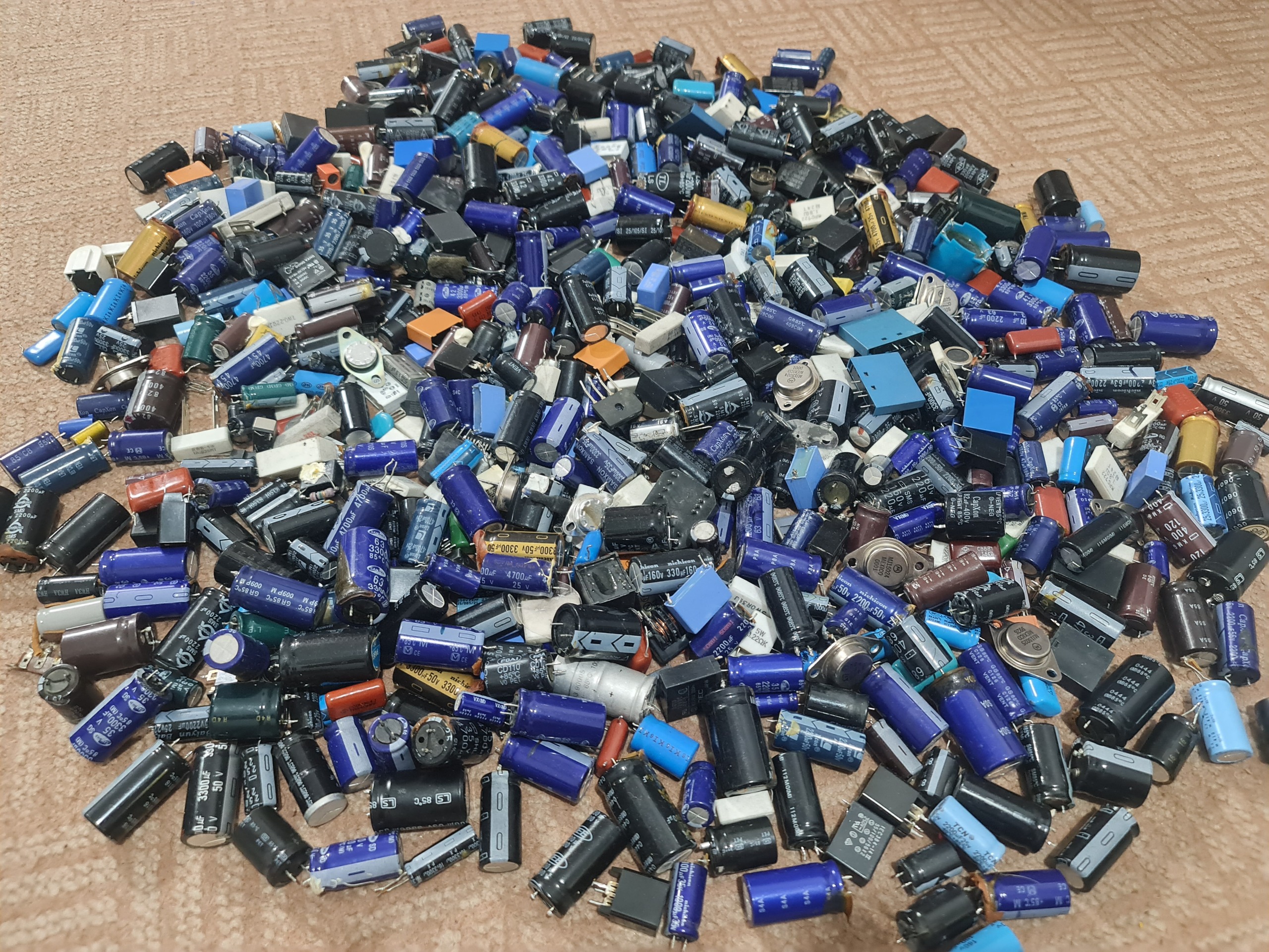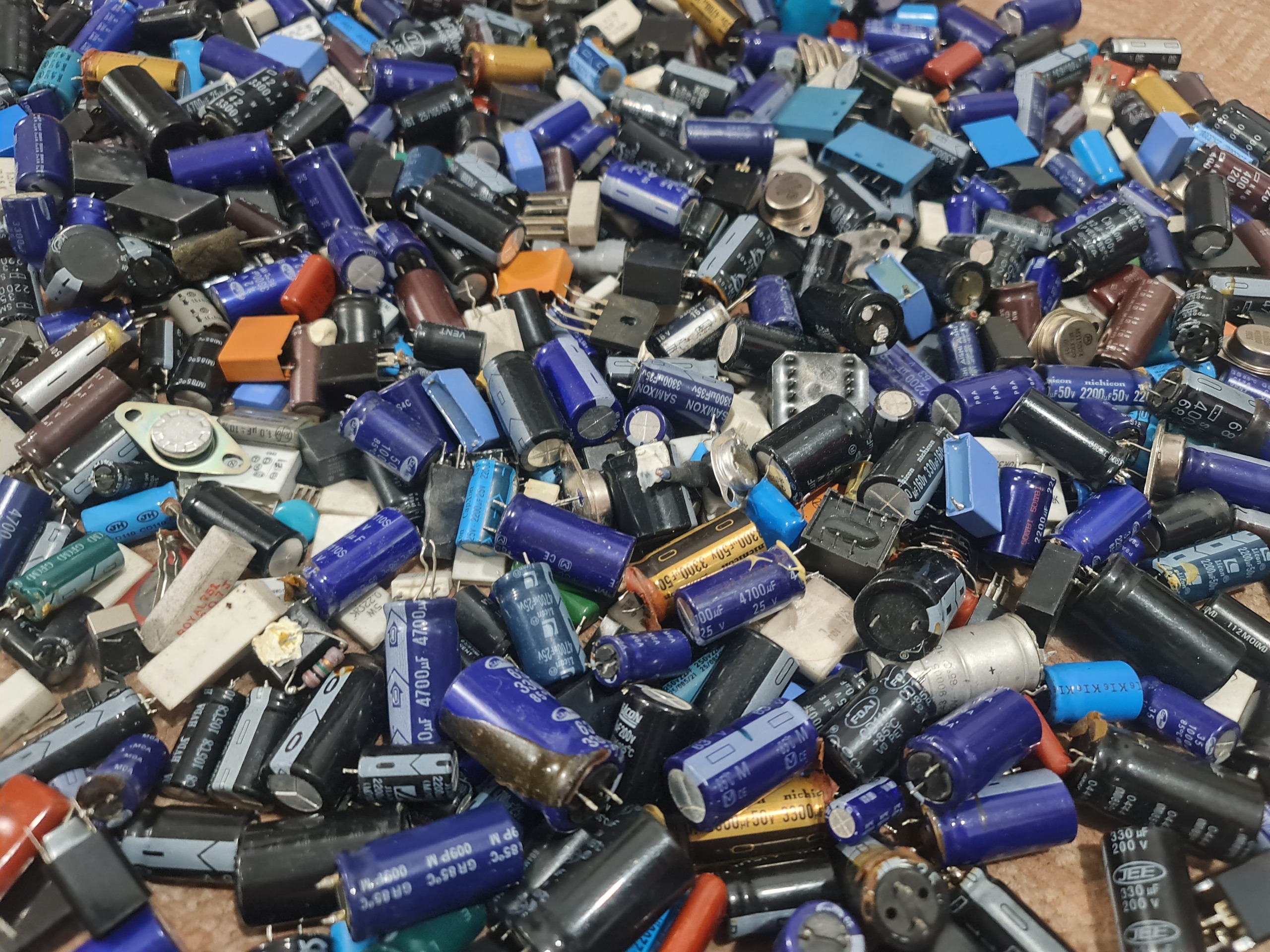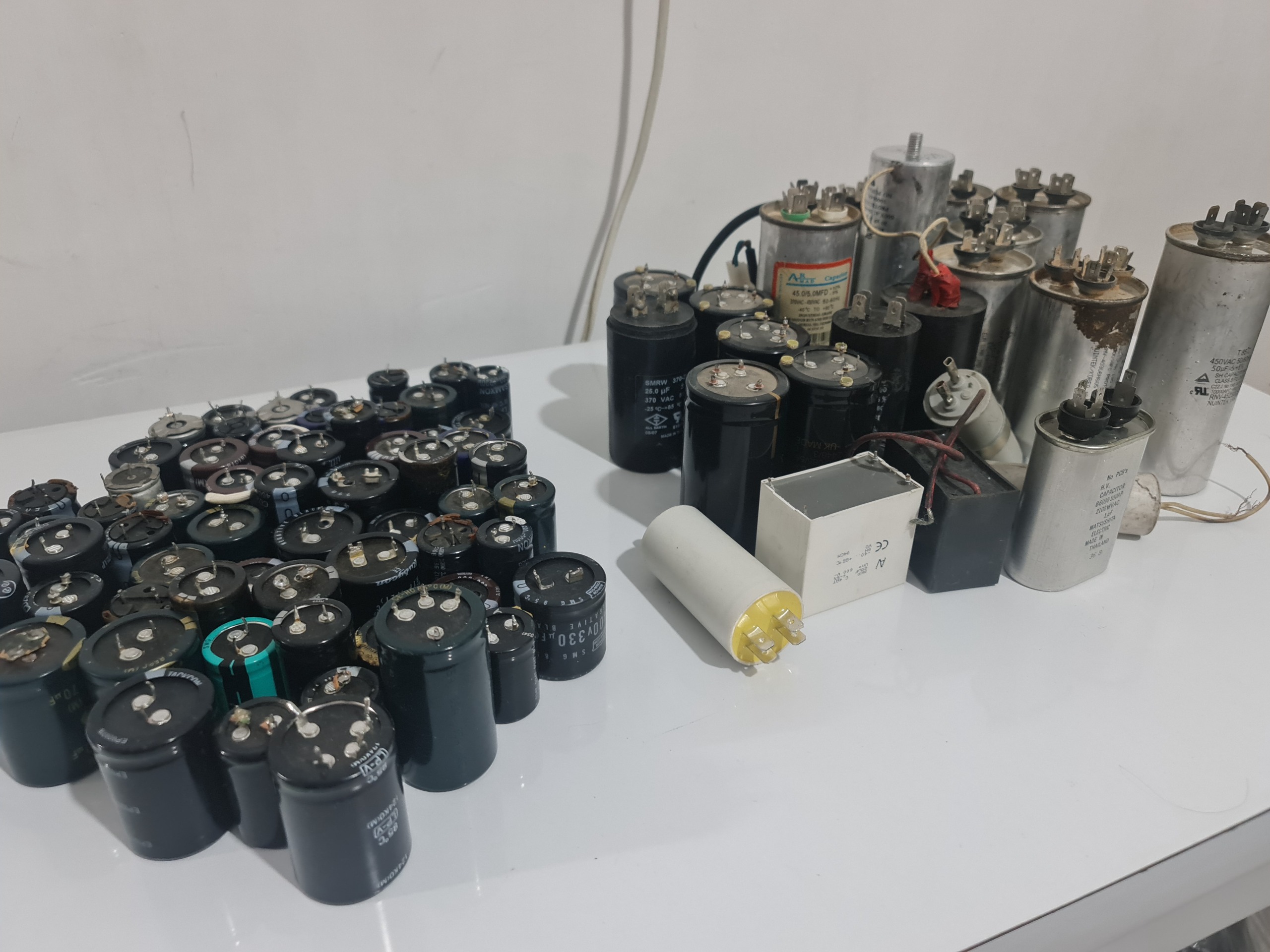 تعداد زیادی خازن بزرگ و کوچک