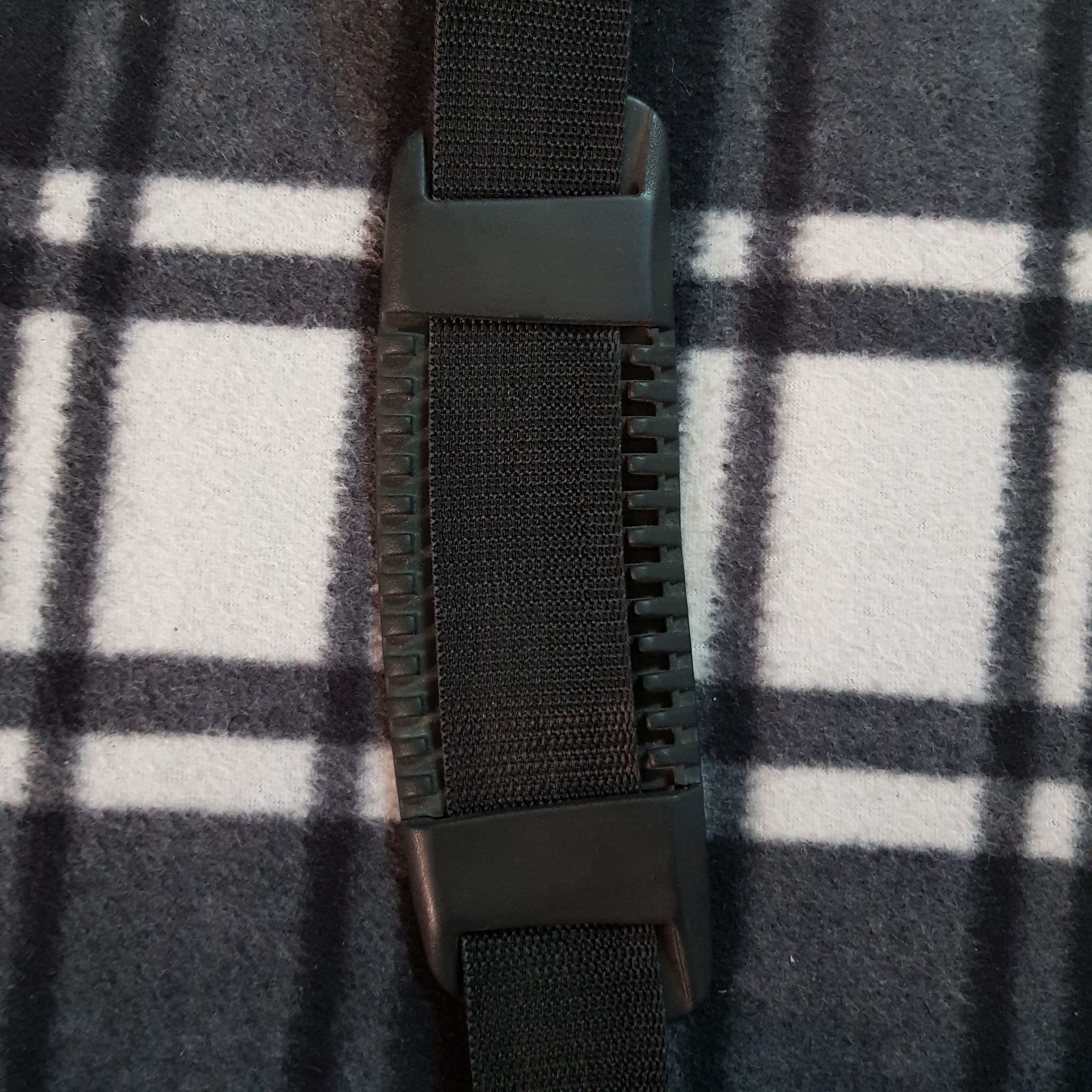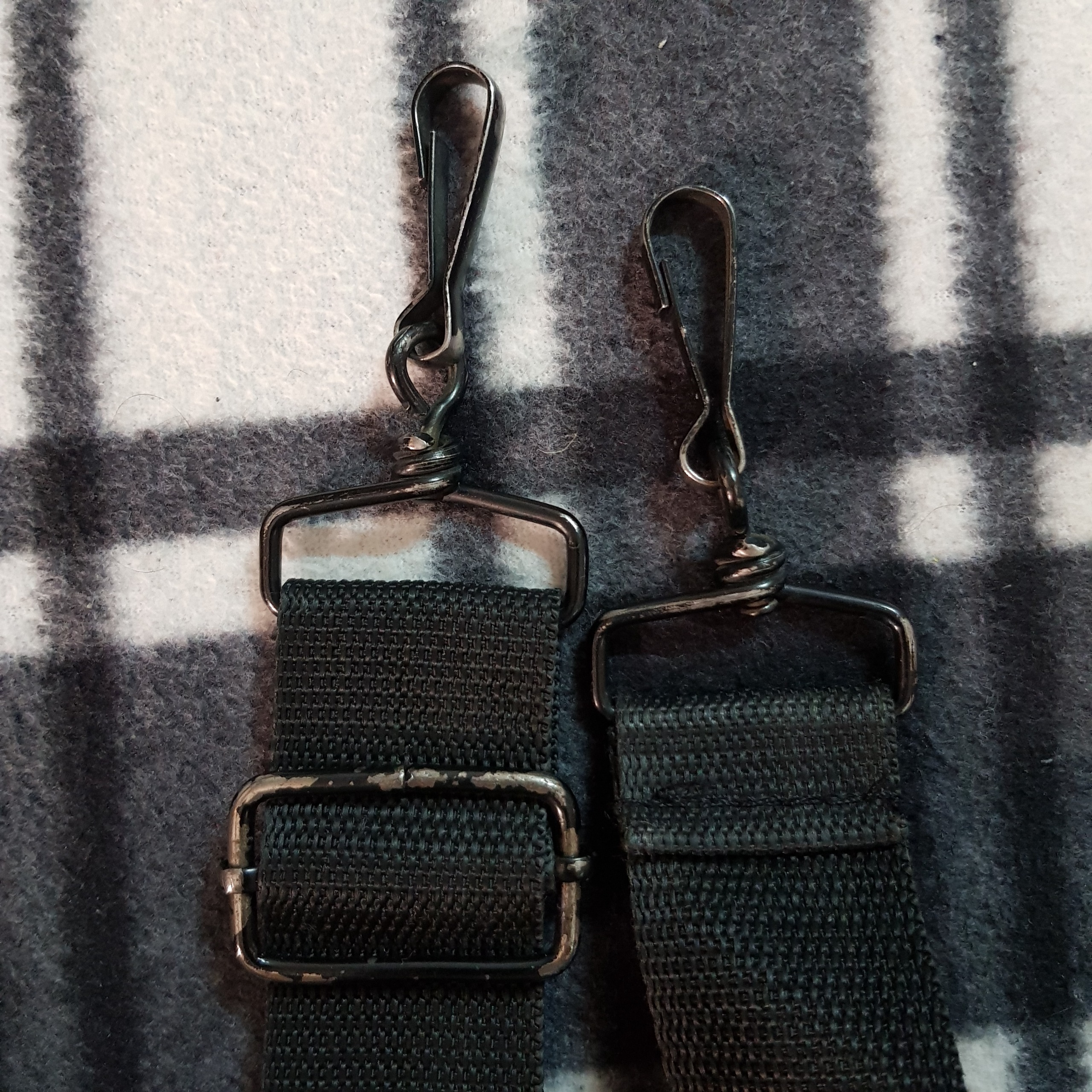 کاملا نو و سالم کیفیت متوسط فقط به مرور زمان رنگ مشکی روی قلابها و سگک فلزی کمی رفته است