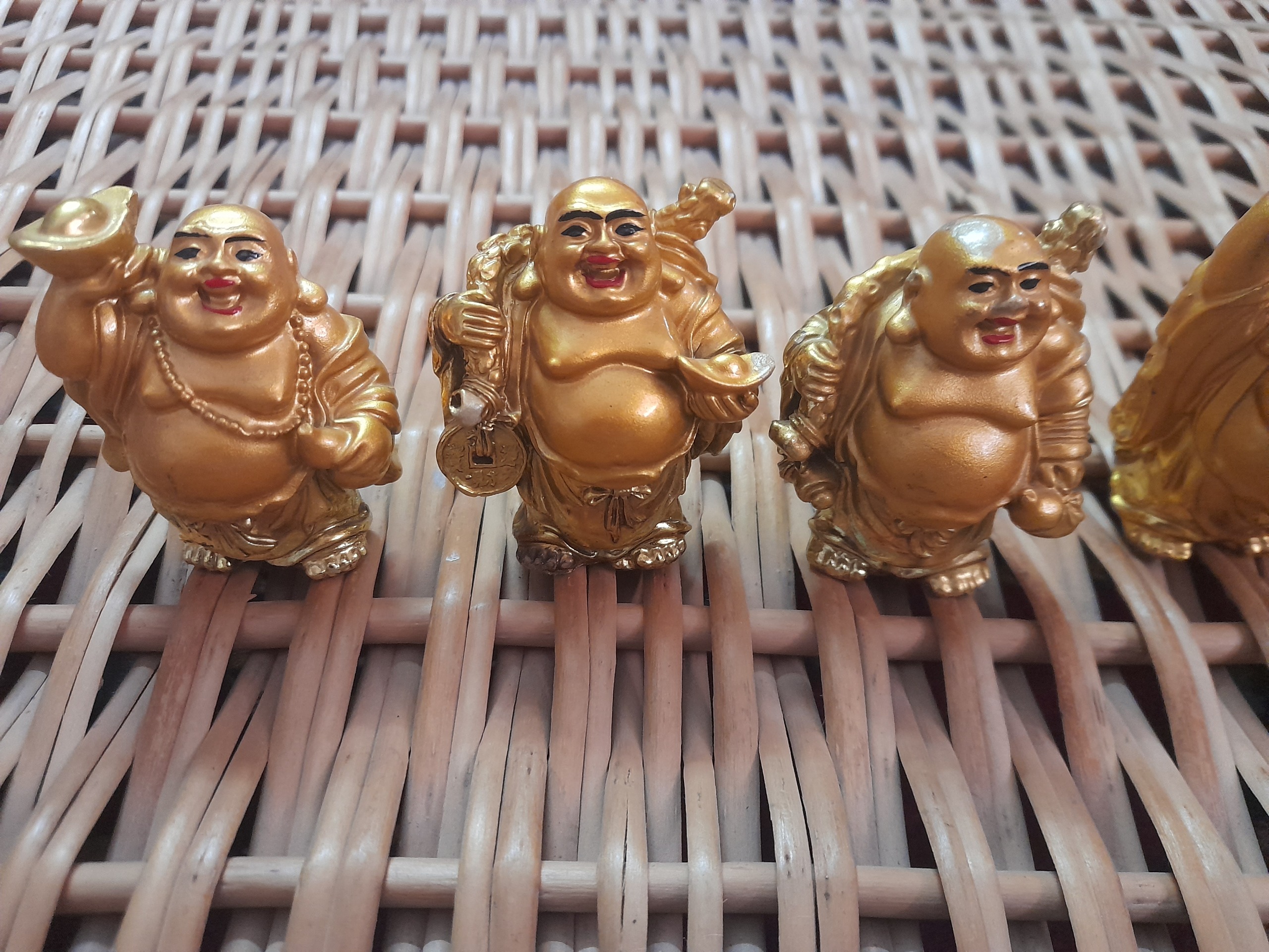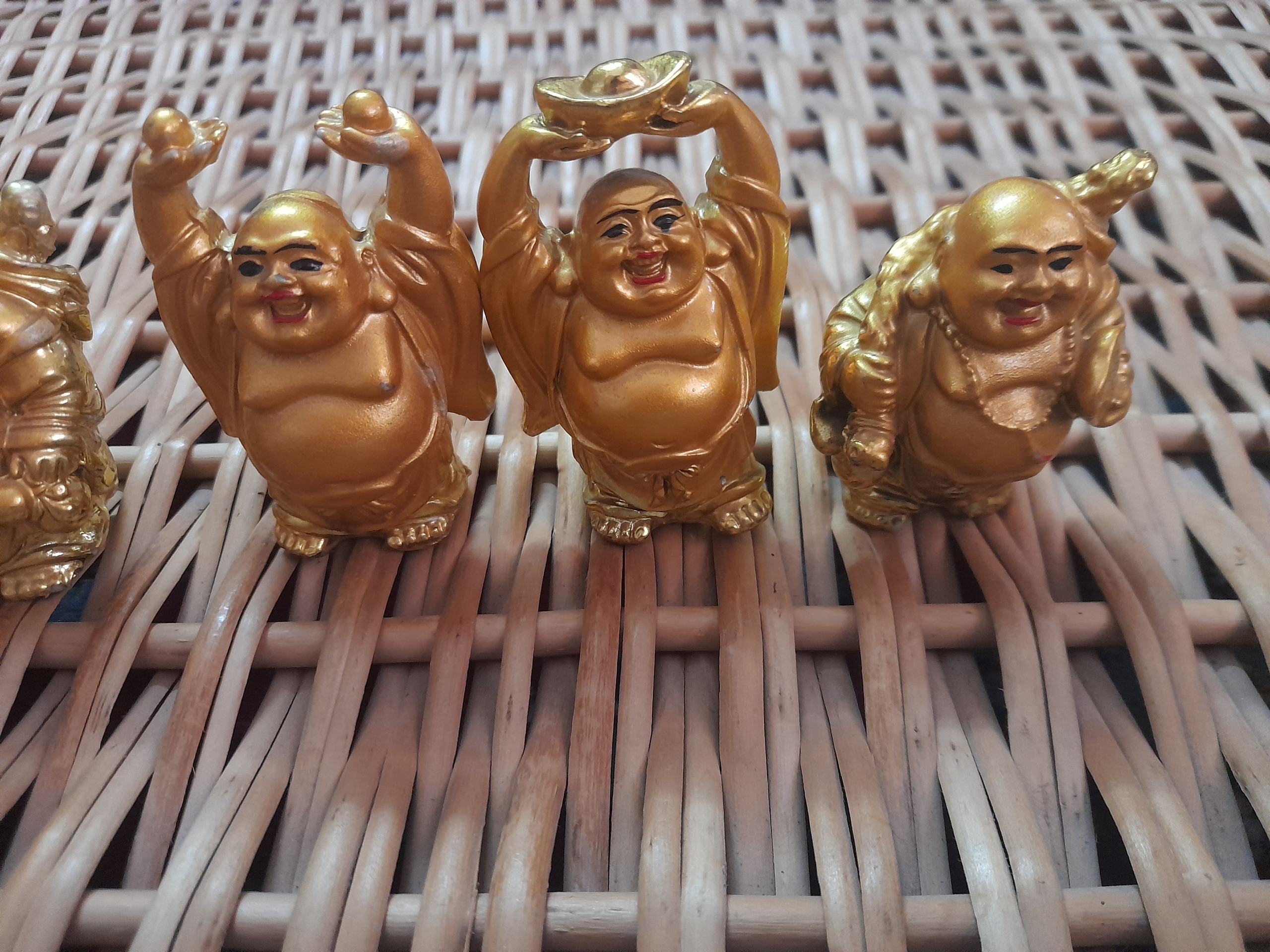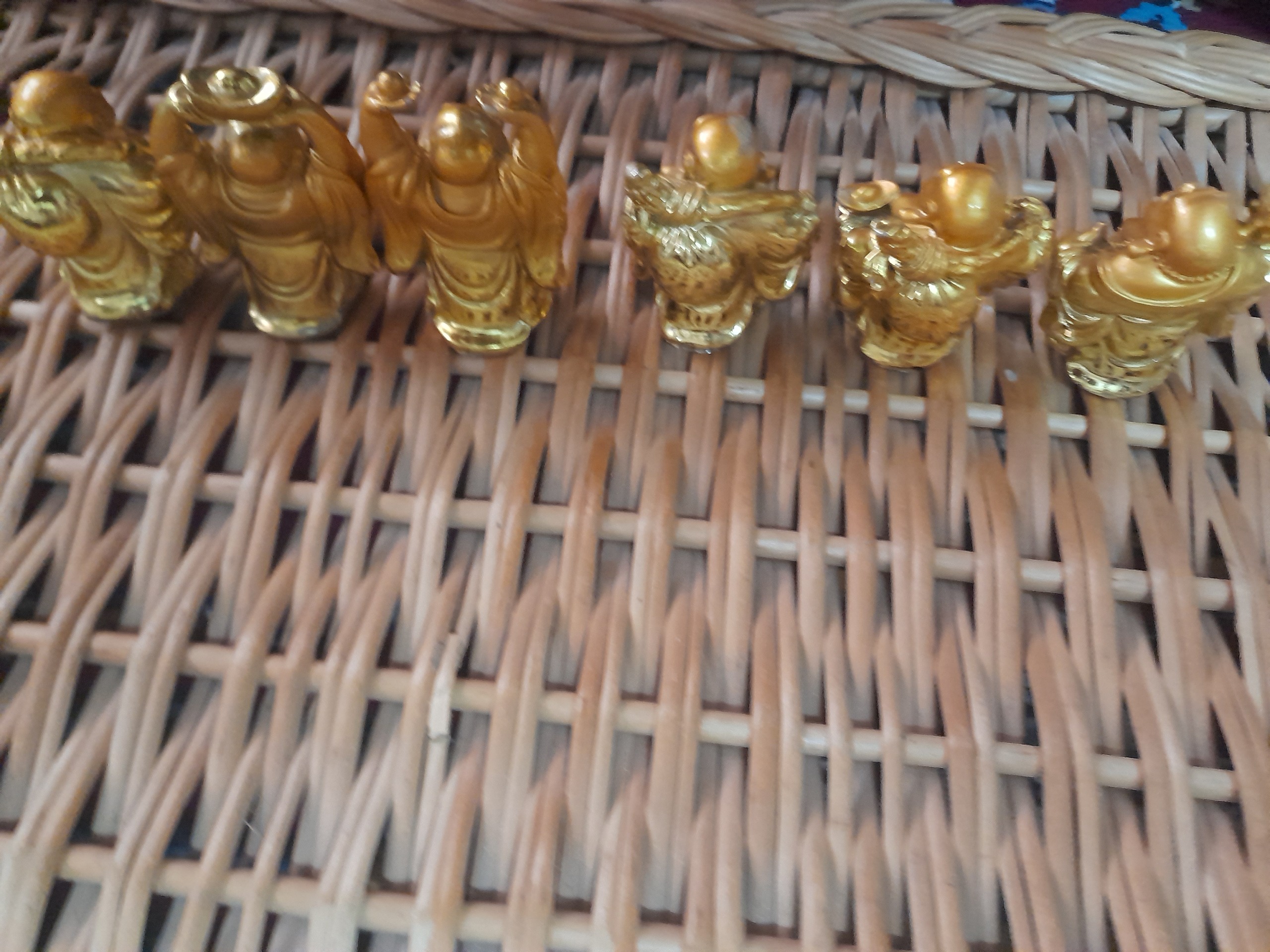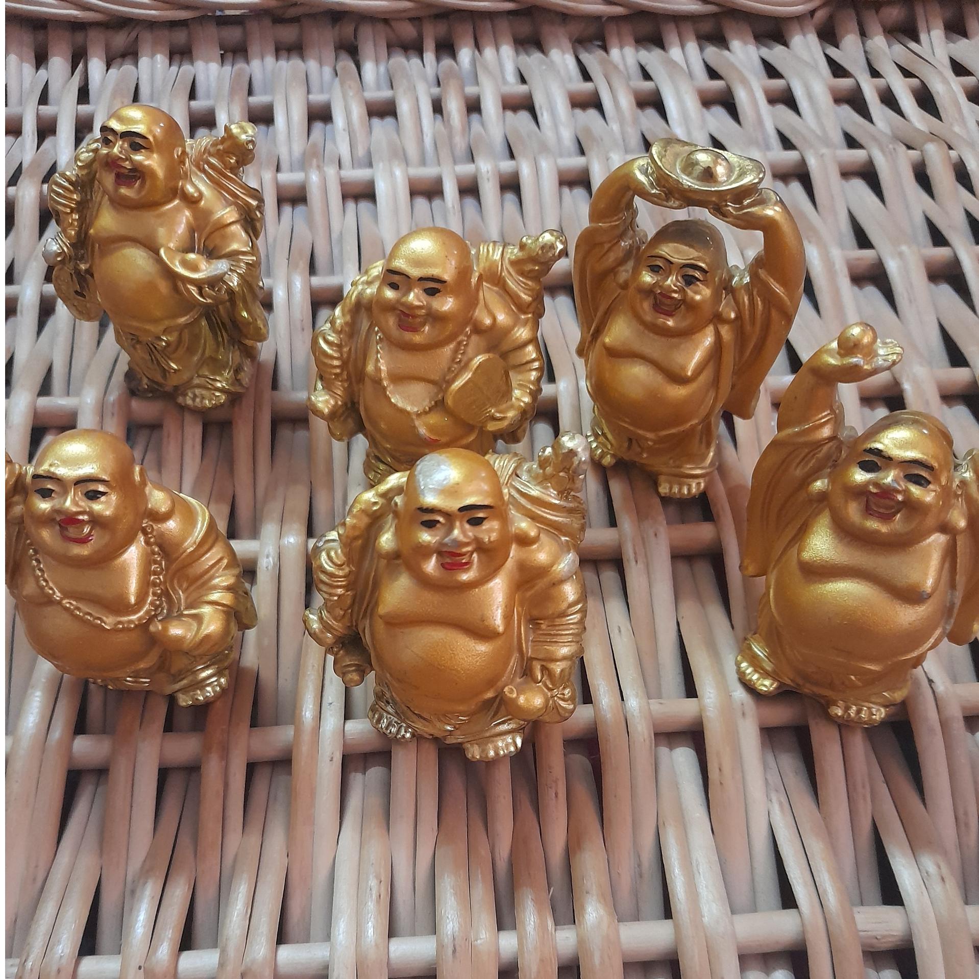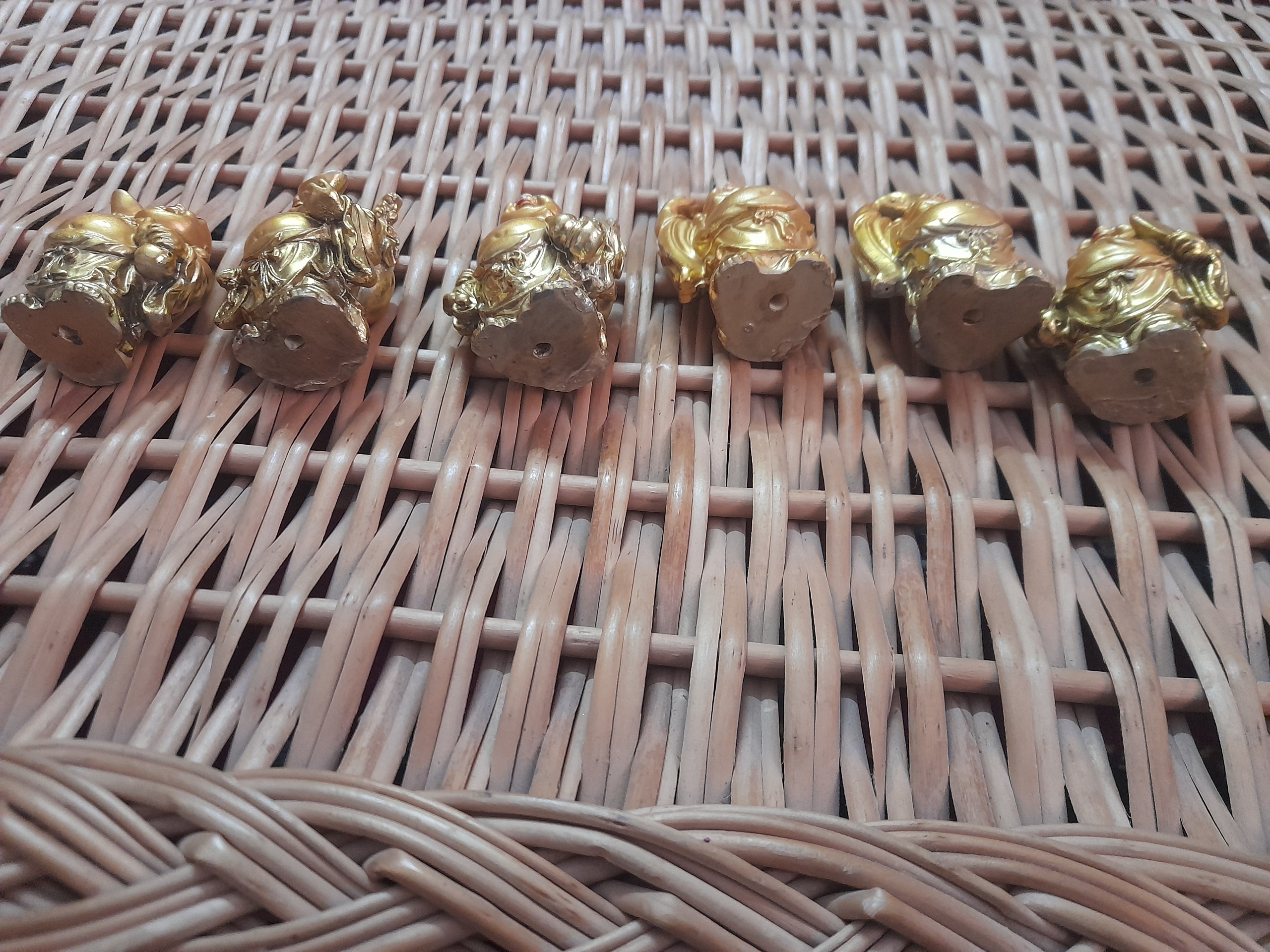 6 عدد مجسمه تقریبا قدیمی هستن اندازشون کوچیکه تقریبا 6 سانته رنگ طلاییشون براق و ماته و بعضی جاهاشون دچار رنگ رفتگی شده ولی تو چشن نیست