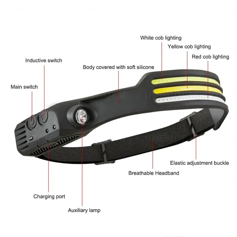 چراغ پیشانی نواری سنسور دار COB+XPE مدل W689-3