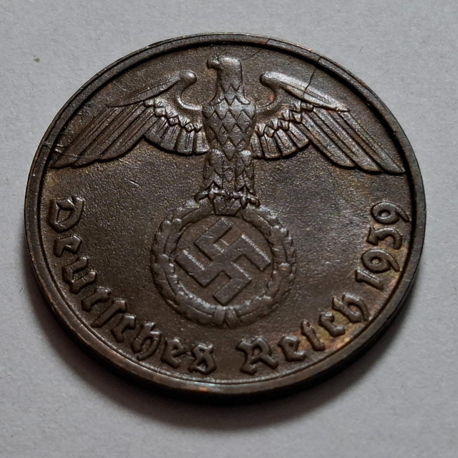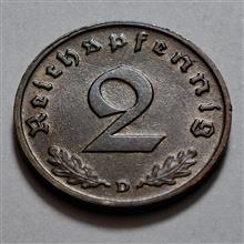 سکه 2 فنیگ آلمان نازی و رایش دوره هیتلر 1939