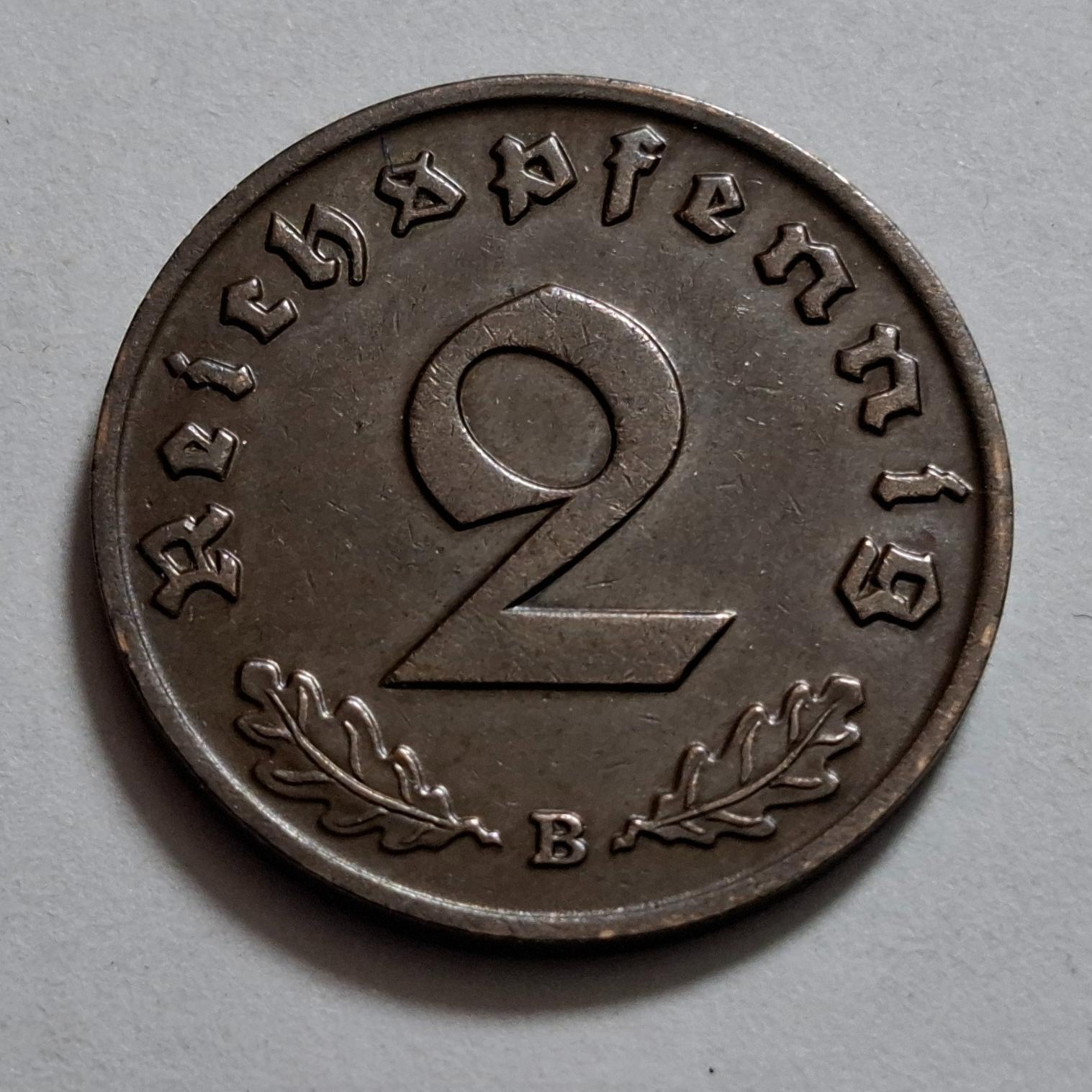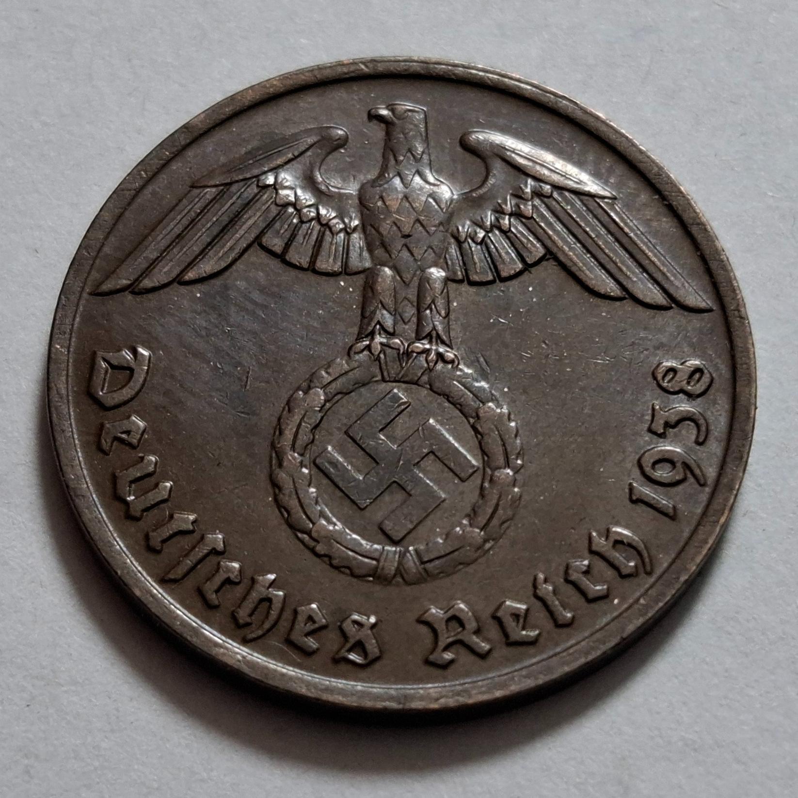 سکه 2 فنیگ آلمان نازی و رایش دوره هیتلر 1938