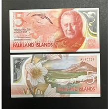 5 پوند جدید فالکلند پلیمری با تصویر چارلز