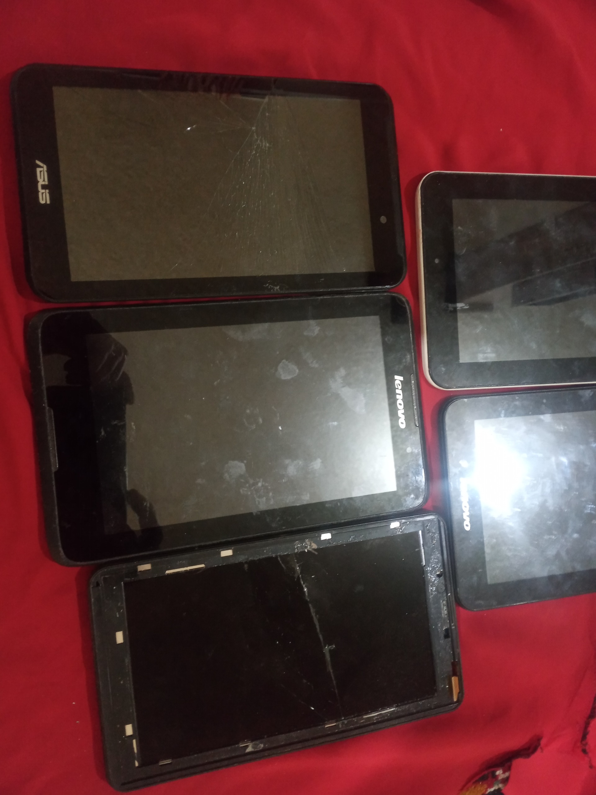 خاموش. یه هواوی یه چینی. دوتا لنوو. یکی ام ایسوس. خاموش. از هیچ چیزش اطلاع ندارم. بدرد استفاده از لوازم وقطعات میخوره. همگی باهم.امکان مرجوعی نیست. بعنوان خراب و معیوب ثبت شده. خاک