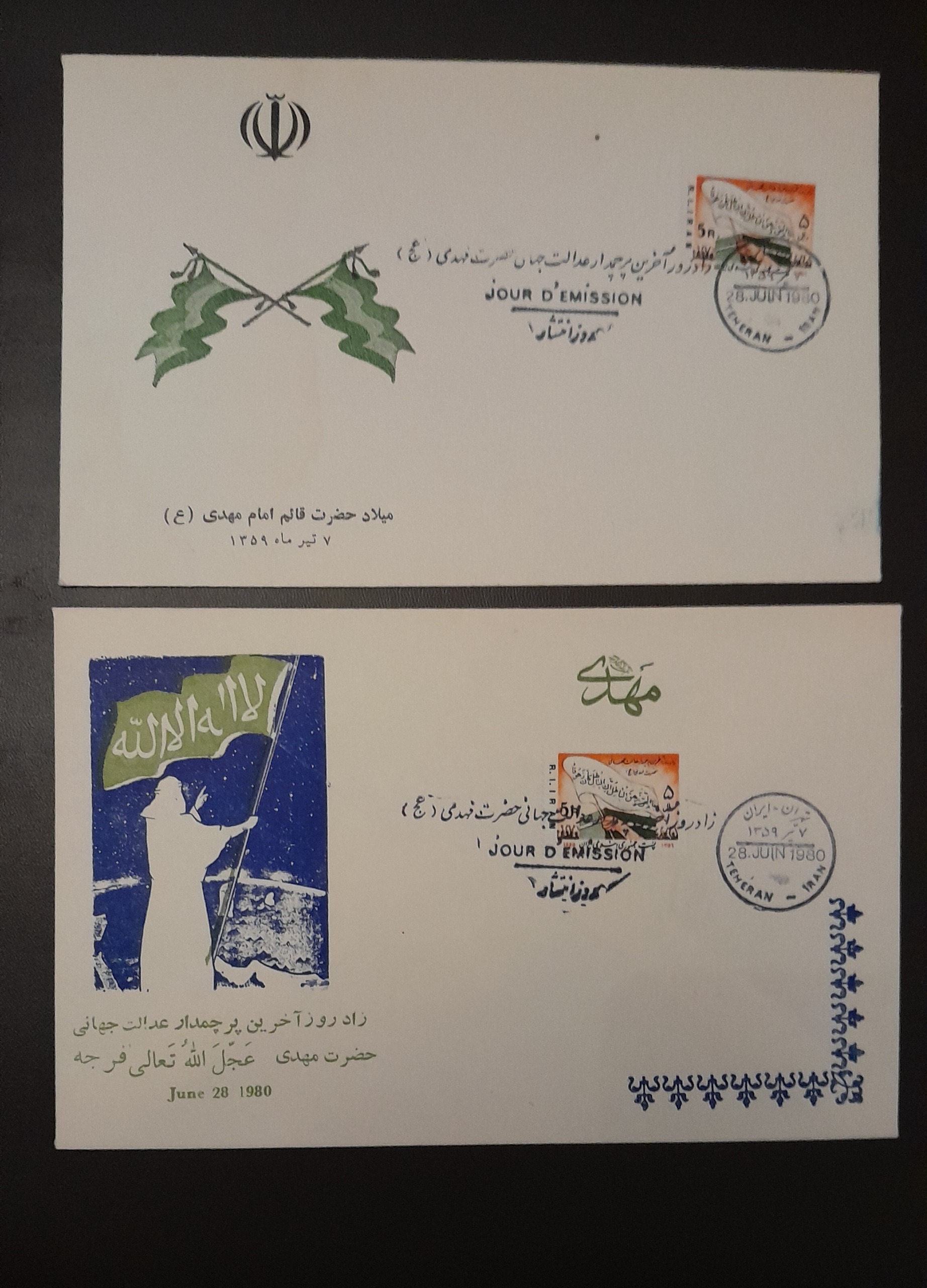 2 عدد پاکت همراه کارت مهر روز تولدحضرت مهدی 1359