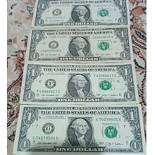 4 عدد یک دلاری آمریکا سالم بدون پارگی سه عدد 2009 و یک عدد 2013می باشند